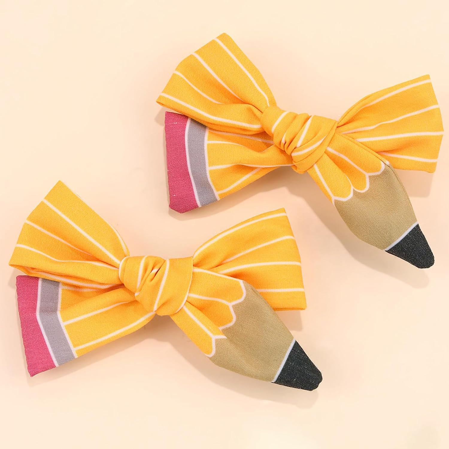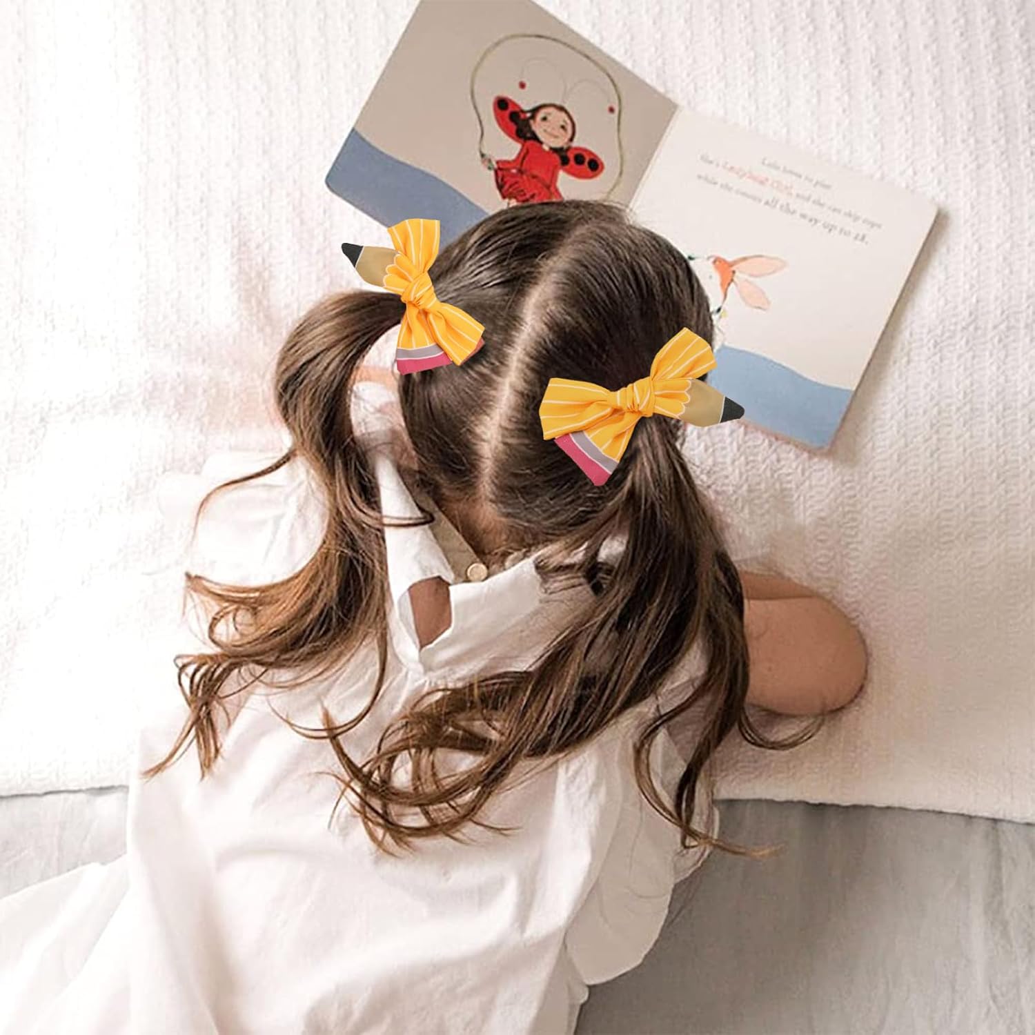 [Package Includes] The package includes 2pcs yellow pencil ponytail hair bow clips. The back to school season hair clips bows for toddler girls are handmade and can be easily matched with different hairstyles and clothes.