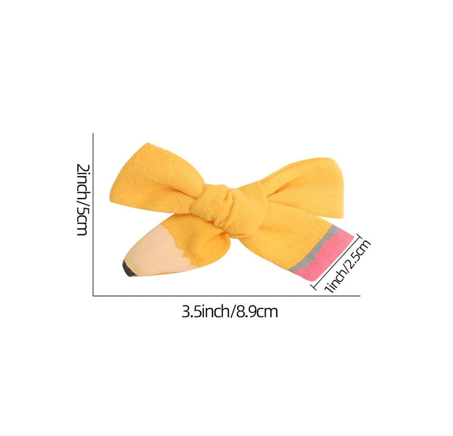 3.5″Yellow White Pencil Hair Bows Clips School Bow Cheer Bow Clip, Back to School Hair Bow Ponytail Holder.(FX2-1)