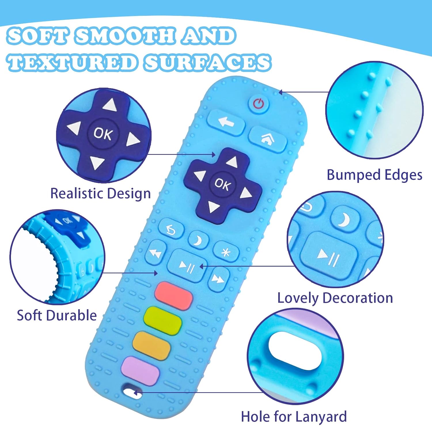 [Unique Design]👶 The baby remote toy chew toys 3-24 months have Various shapes of dental gum can better alleviate the discomfort of the baby’s gums.Teething relief toys pressing keys can attract the baby’s attention.Teething toys for babies 0-6 months back-shaped depression design can enhance the stimulation of the oral cavity,further alleviating dental discomfort,It is for babies 3-24 months size is perfect for the baby.