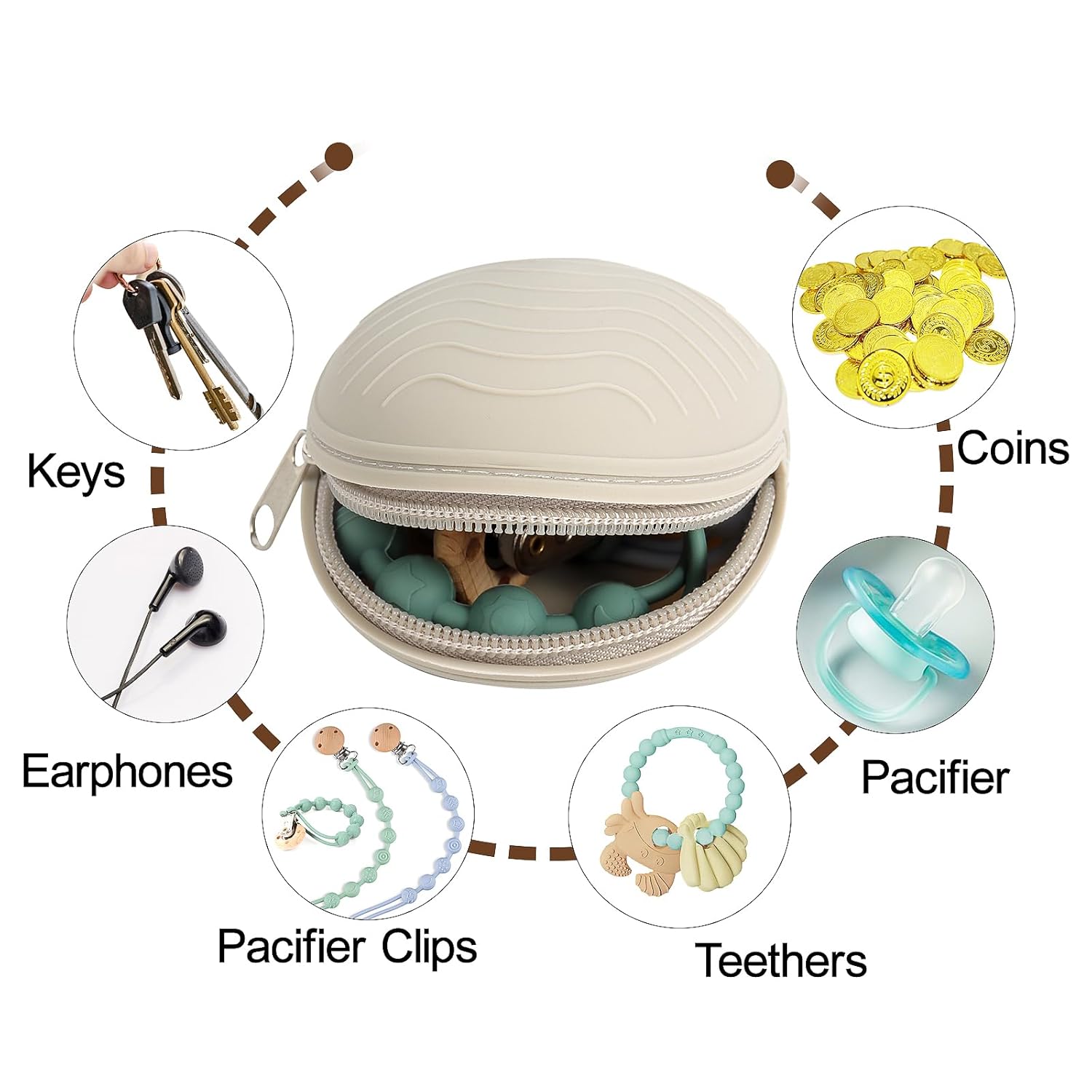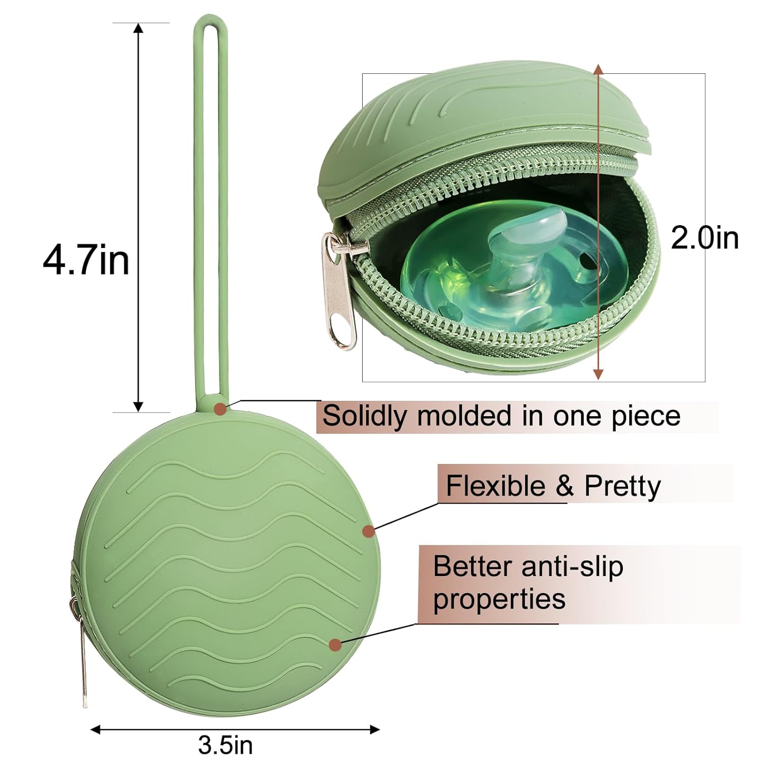 Made from 100% Food-Grade Silicone; Keep Comfort in Reach with These Pacifier Holder Case! Designed with a Sturdy Strap, It Can be Easily Looped onto a Diaper Bag or Stroller; Easy To Clean!Dishwasher safe, free your hands and save time.