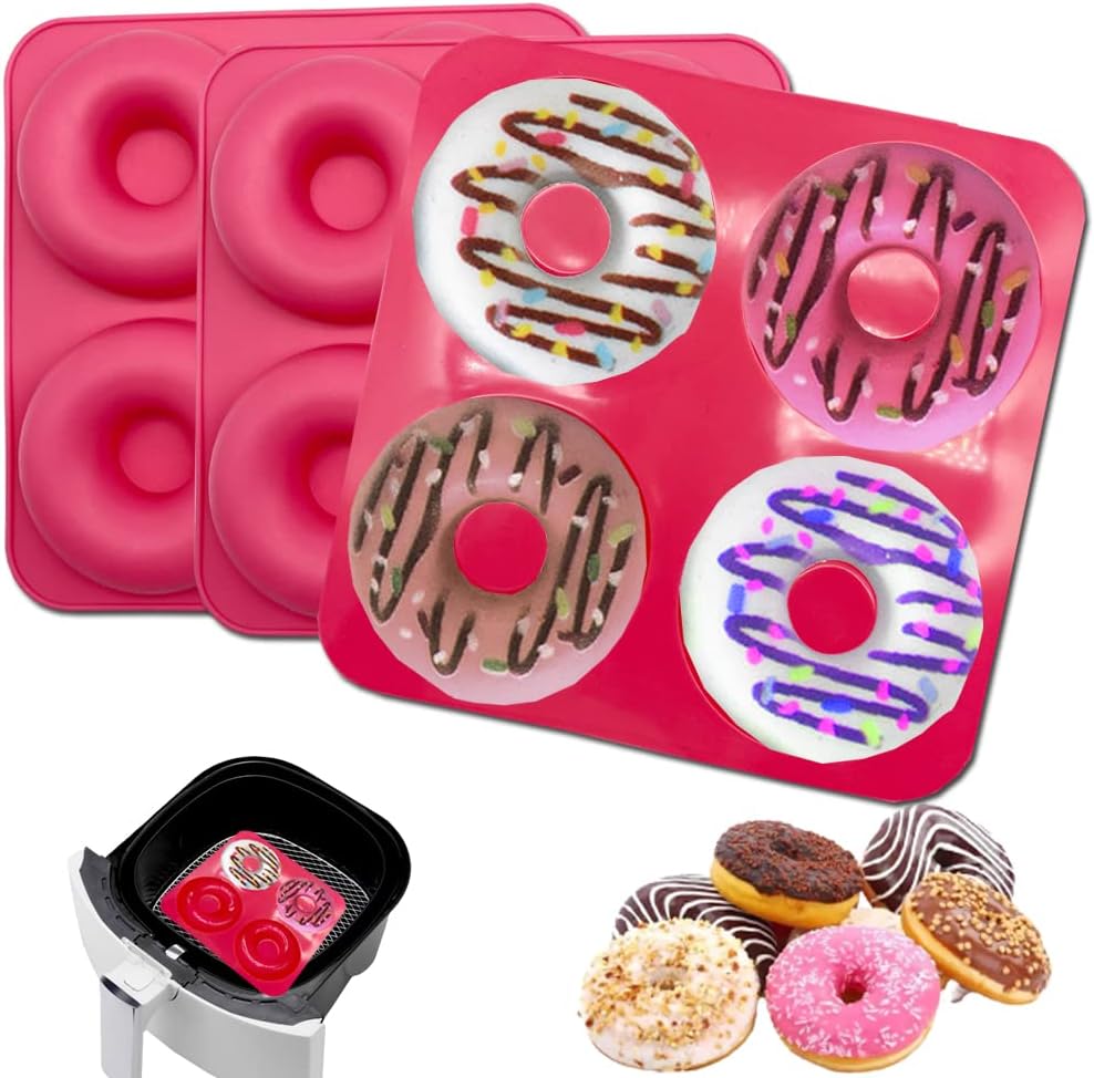 3 PCS Silicone Donut Mold for 4QT-8QT Air Fryer, Reusable Donut Pan for Baking,4 Cavity Non-Stick Bagel Pan,Air Fryer Accessories for Intsant Votrex Ninja Foodi