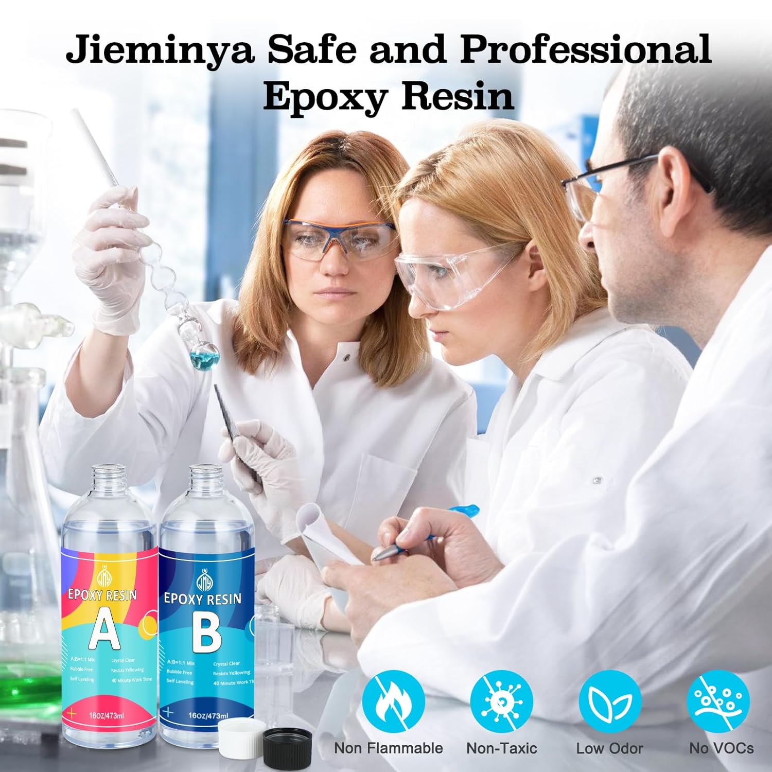 Premium Epoxy Resin Kit: Jieminya epoxy resin is self -leveling and selef degssing, which allows you to create a perfectly crystal clear high gloss finish. The epoxy resin high gloss formula cures a perfectly crystal clear finish and hard as a rock to resist scratch and yellowing. With eliminating craters, crawling and fish eyes, which could easily get a perfectly transparent finish.