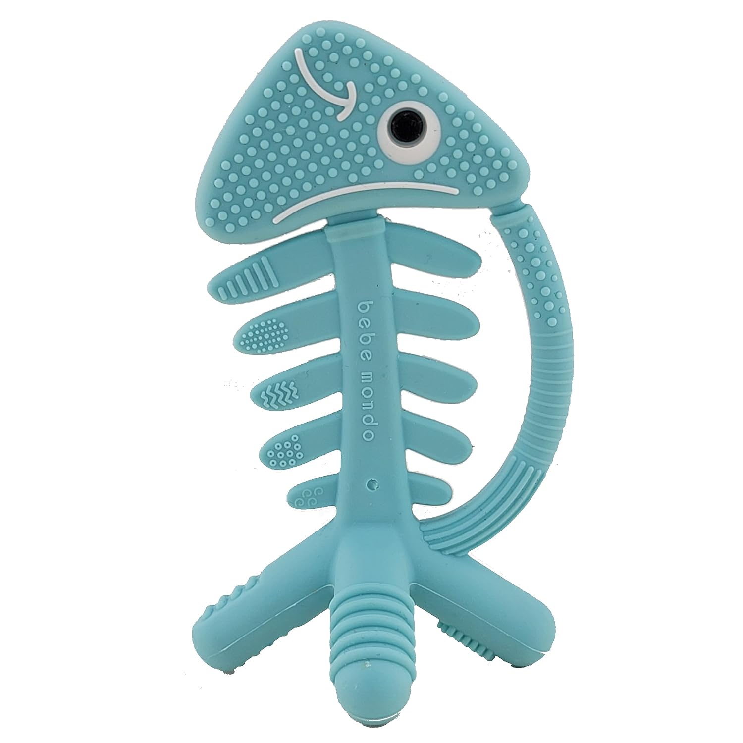 [Expertly Designed for Safety and Comfort]: Bebe Mondo Massaging Baby Teether, a creation by specialists in toy design and Pediatric Dentists equipped with recent pediatric dentistry knowledge.This 3D fish silicone teether features a double-sided design, including fish fins, head, mouth, tails, and bones, all embedded with varied textures.Adhering to rigorous safety standards (ASTM, CPC), our American brand ensures utmost safety and quality.100% safe.No odd smell.dishwasher safe,freezer safe.