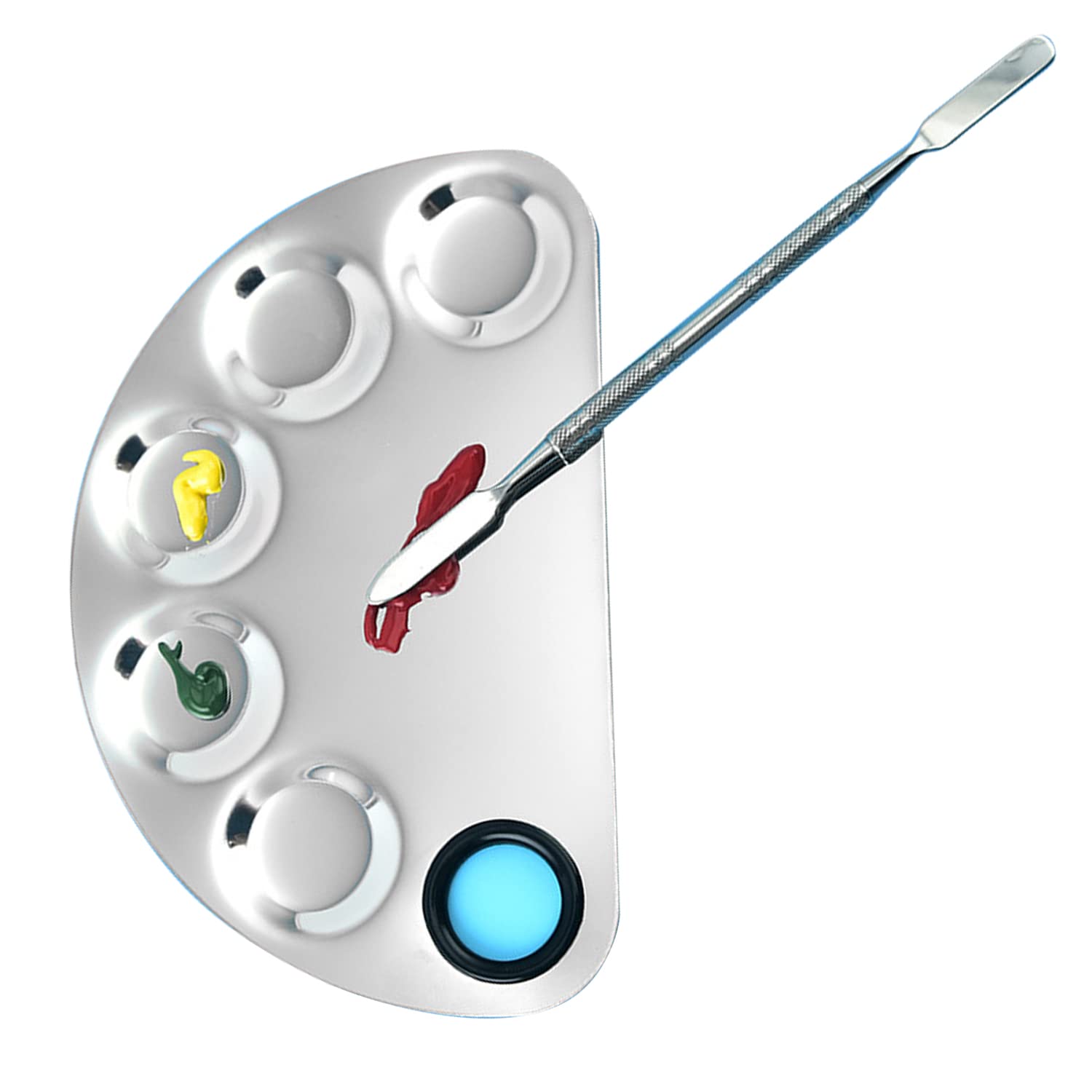 3D printer Stainless Steel Palettes and Paint Brushes Set for Paint Mixingfor Acrylic Painting Watercolor Canvas Boards Rock Body Face Nail Art, Halloween Pumpkin Ceramic Crafts Supplies,Easy to Clean