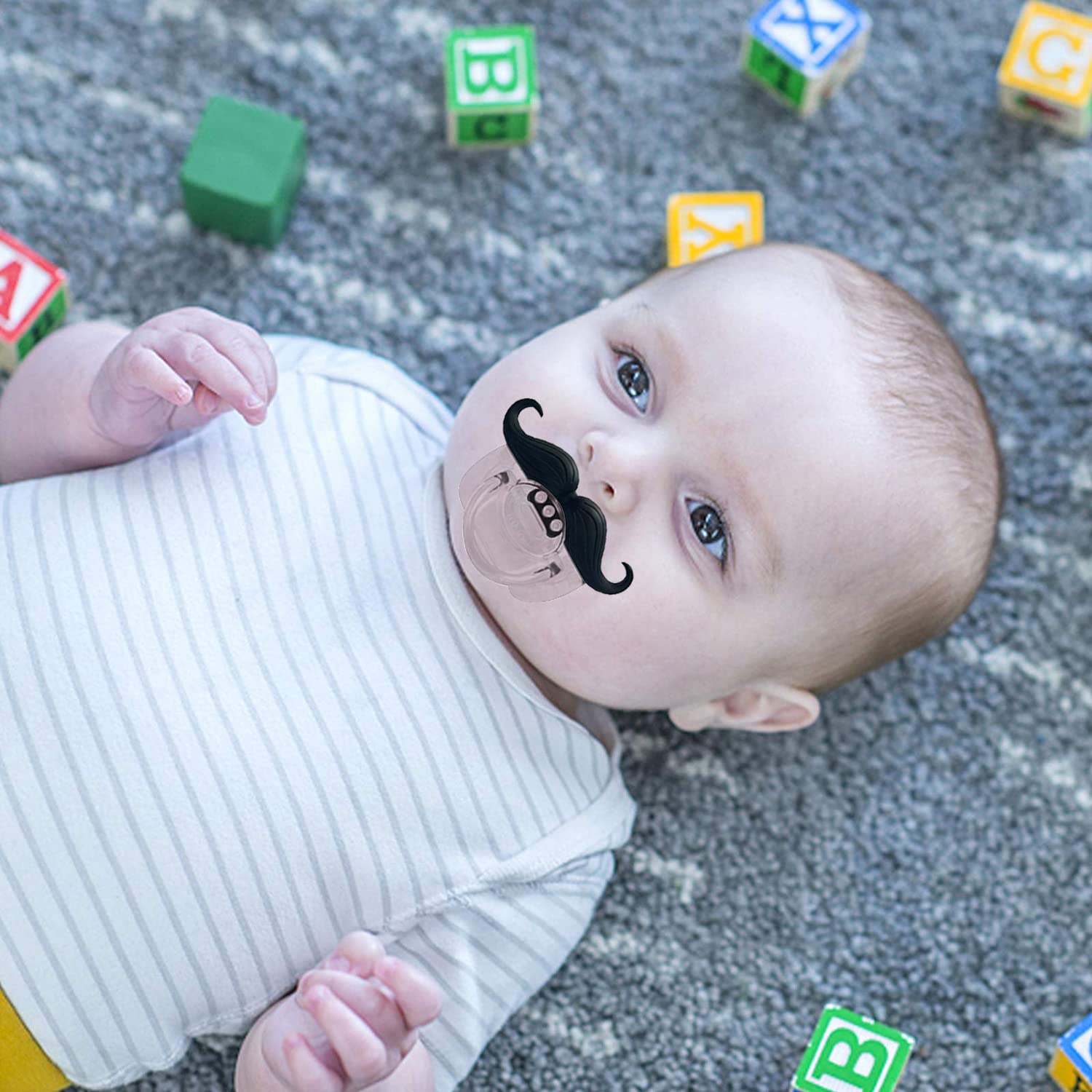 💕 【Pacifier Design】: Cute baby pacifiers designed with mustache make them a perfect baby shower gift for babies, our orthodontic pacifiers help ensure natural oral development