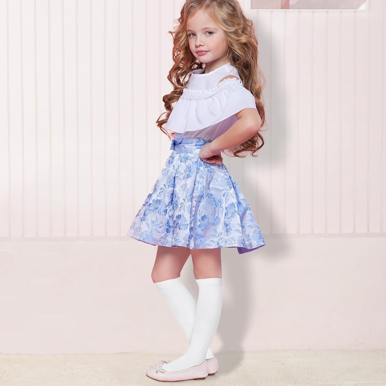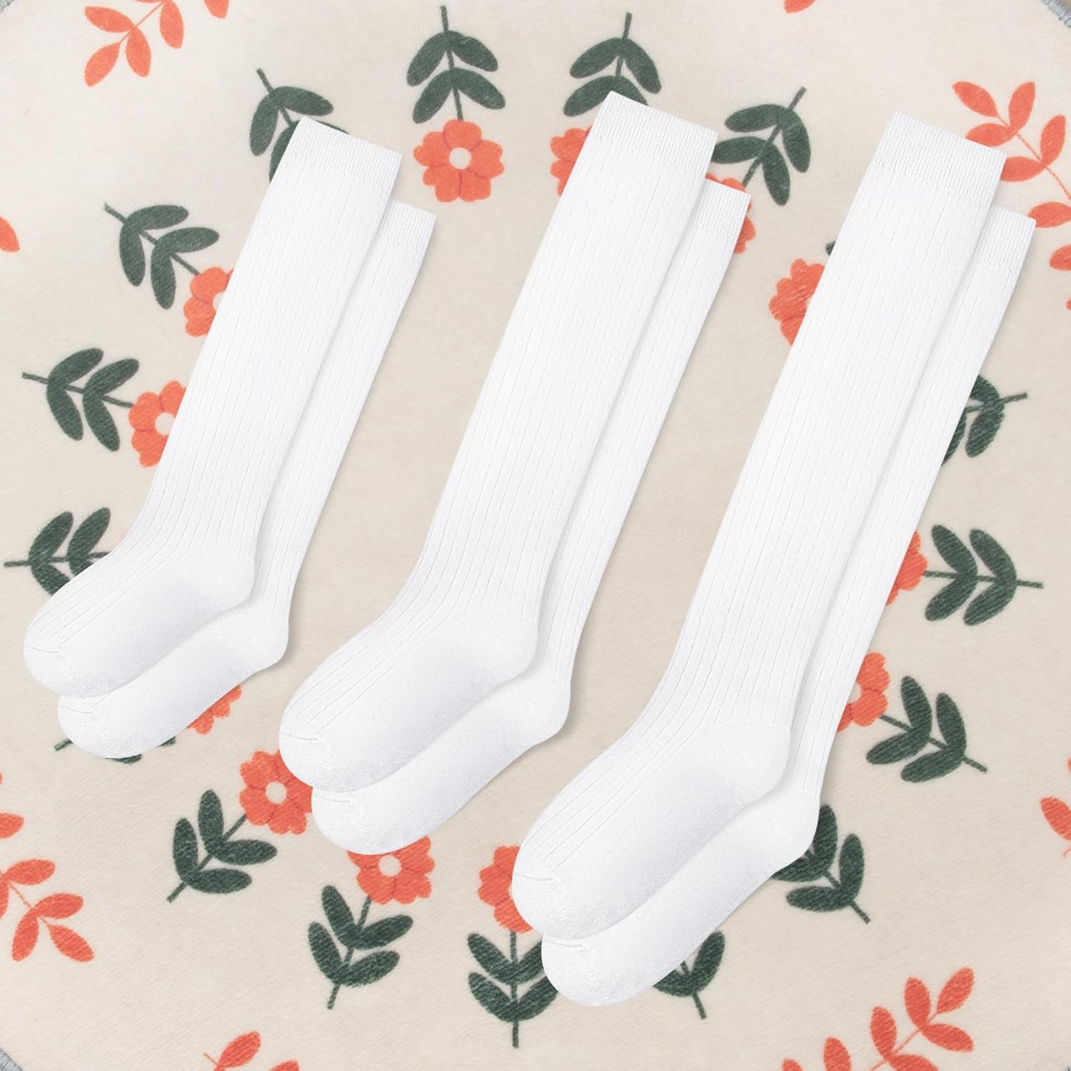 4 Pairs Girls Knee High Socks Cotton Knit Over Craft Thigh High Socks for Baby Toddler School Uniform
