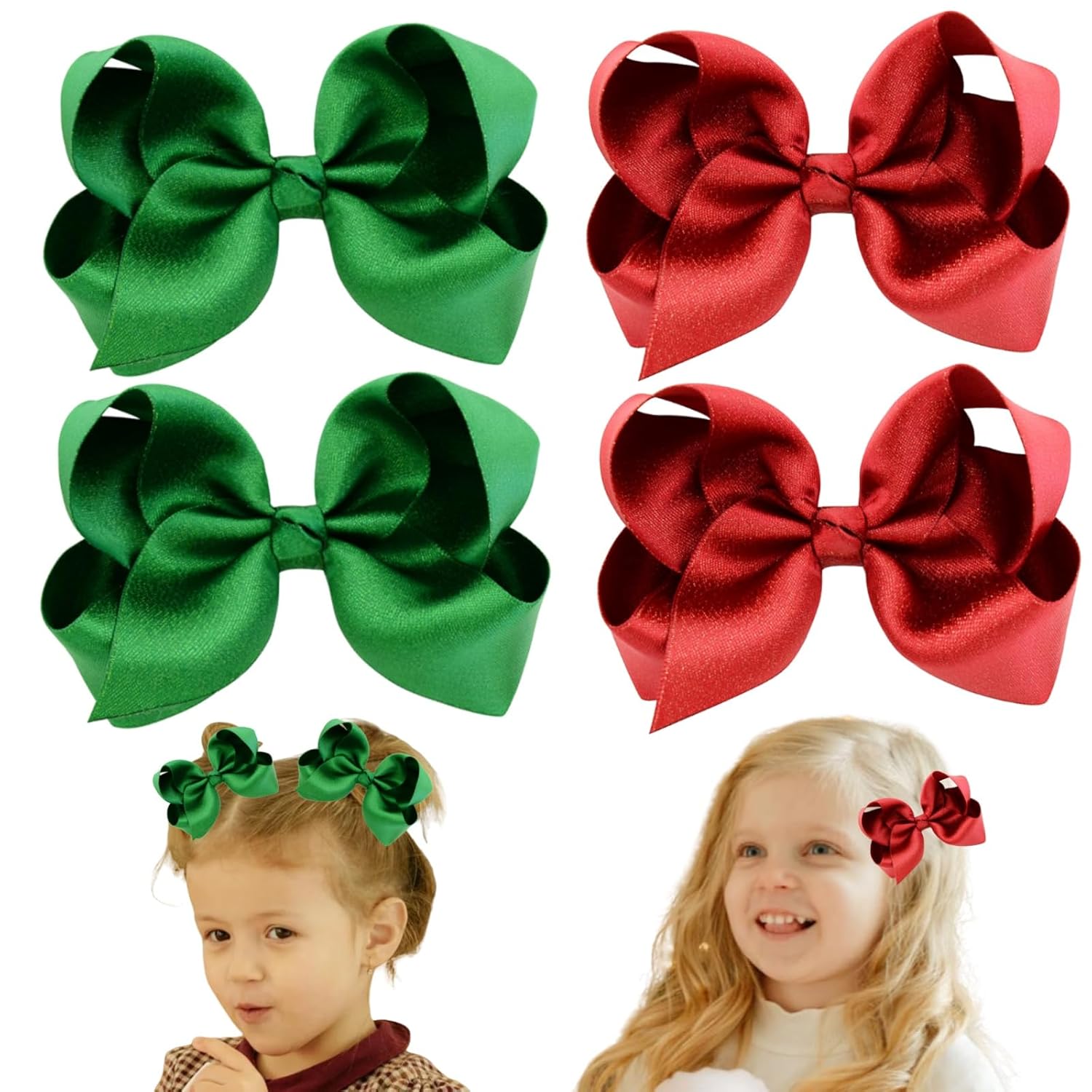 2pcs 4″ Hair Bows Clips Solid Color Grosgrain Ribbon Larger Hair Bows