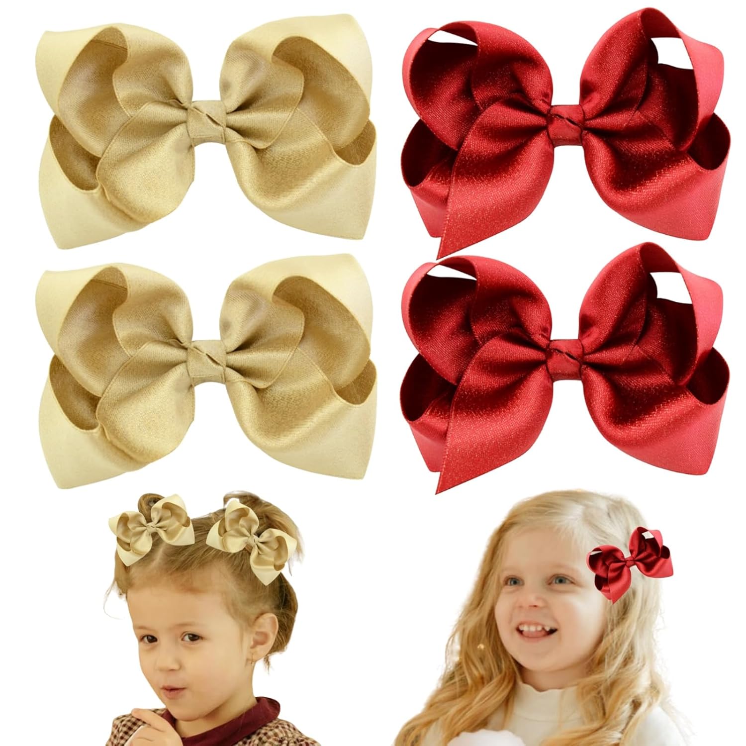 【Package Includes】- 4PCS (2 Pairs)2 x Light gold bows and 2 x Dark Blue hair bow.You are certain to find a color to match any of your sweet girls’ outfit! These girls hair bows clips are absolutely adorable and well great for girls toddler accessories hair decoration.