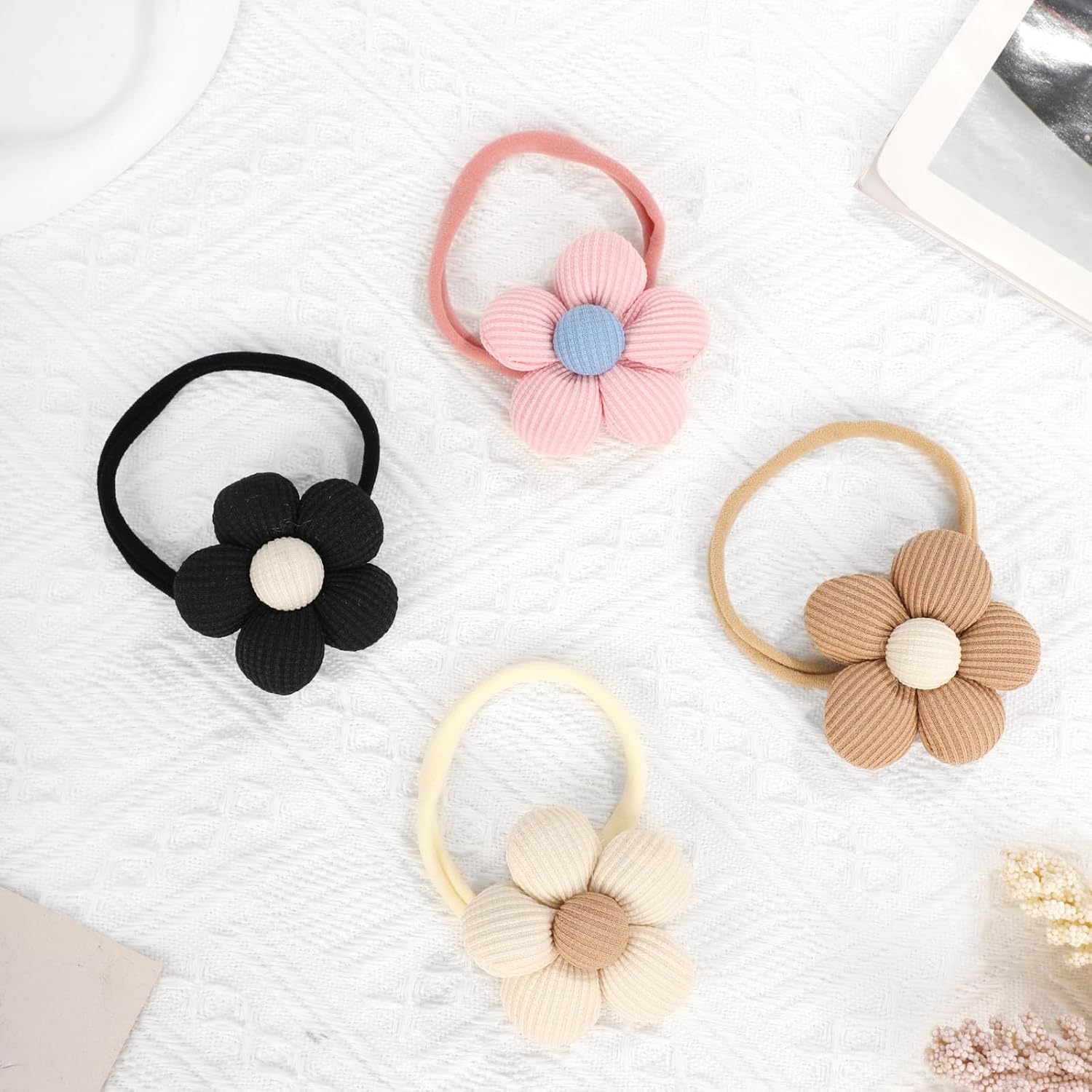 4 Pcs Baby Flower Headbands Baby Girls Nylon Headbands Soft Hairbands Hair Accessories for Newborn Infant Toddler Kids
