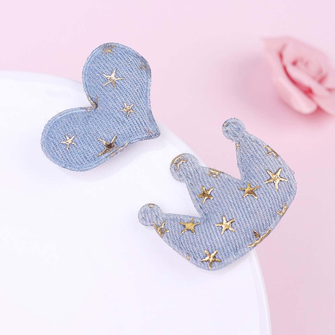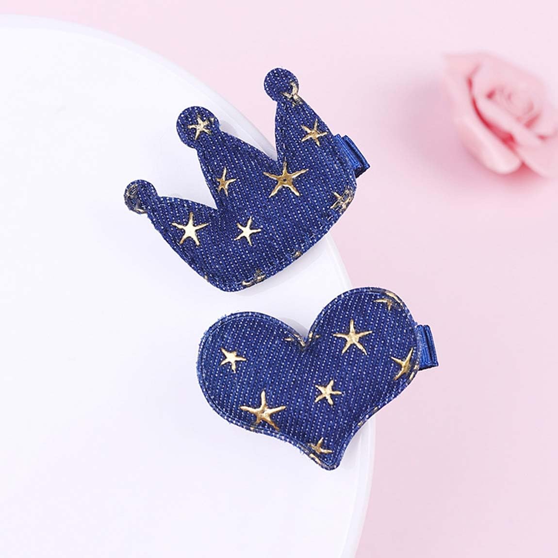 4 pcs Baby Girls Heart Hair Clip Toddler Crown Hair Clip Denim Hair Clip with Star Boutique Hairpin TSFJ65 (Heart Crown Set)