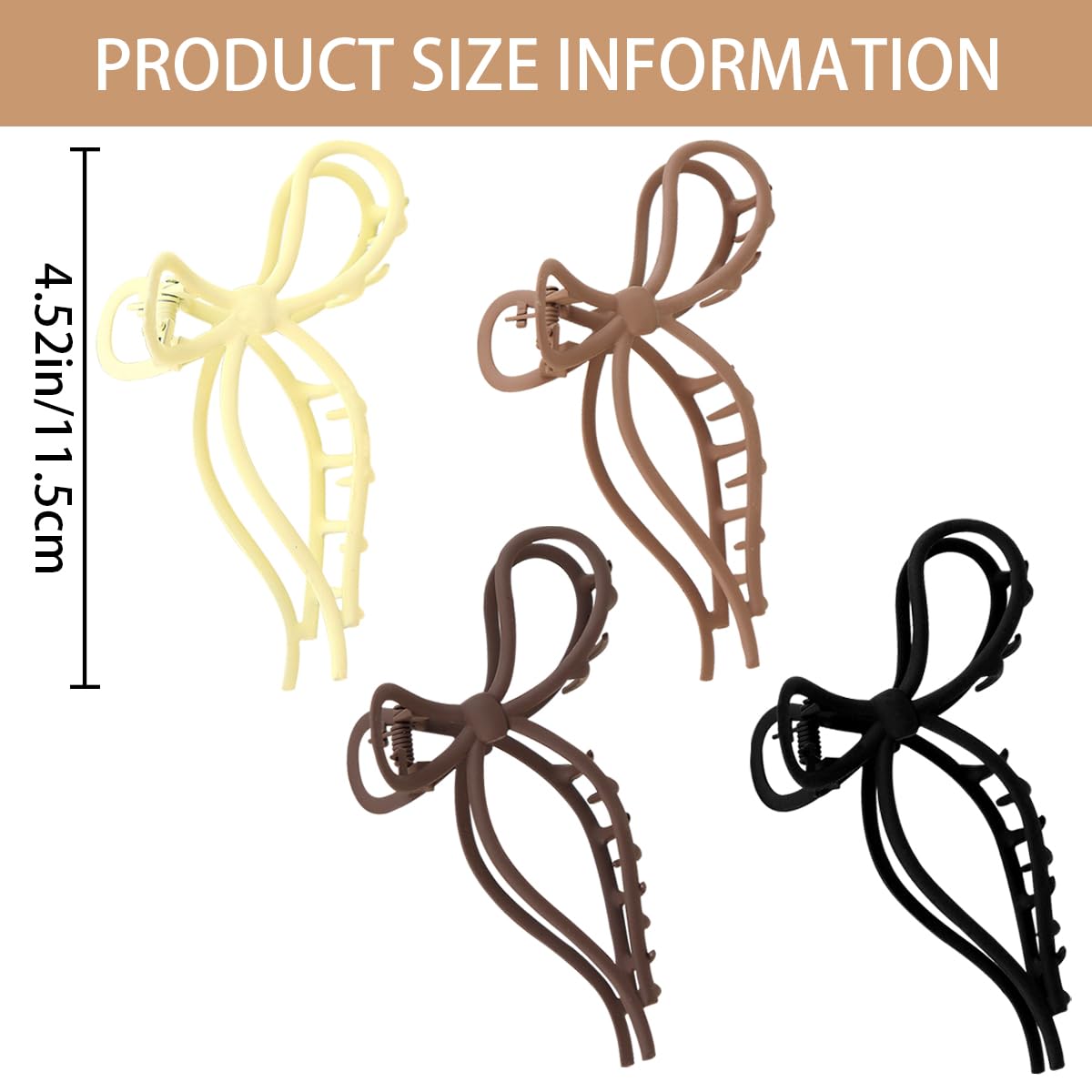 4 PCS Bows Claw Clips Elegant Bow Hair Claw Clips Stylish Large Hair Clips Trendy Claw Clips for Thick Hair Cute Large Hair Claws Non slip Fashion Hair Accessories for Women Teen Grils