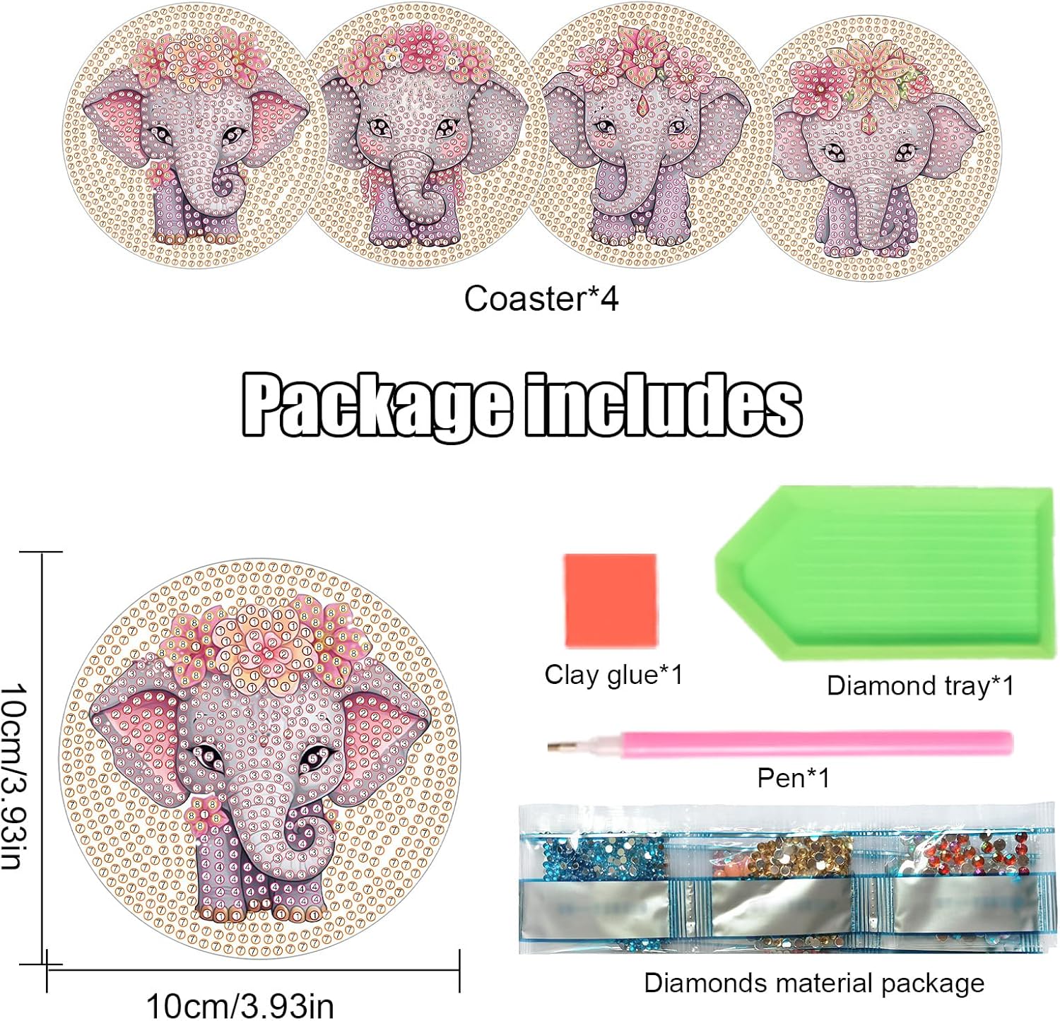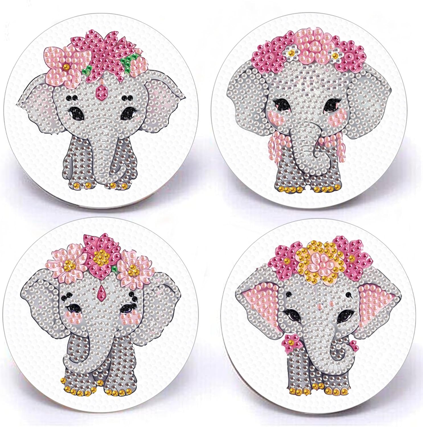 4 Pcs Diamond Painting Creative Coasters DIY Animal Elephant Diamond Art Coasters Diamond Painting Kits Diamond Non Slip Coaster for Beginners Adults Home Dining Decors Art Crafts
