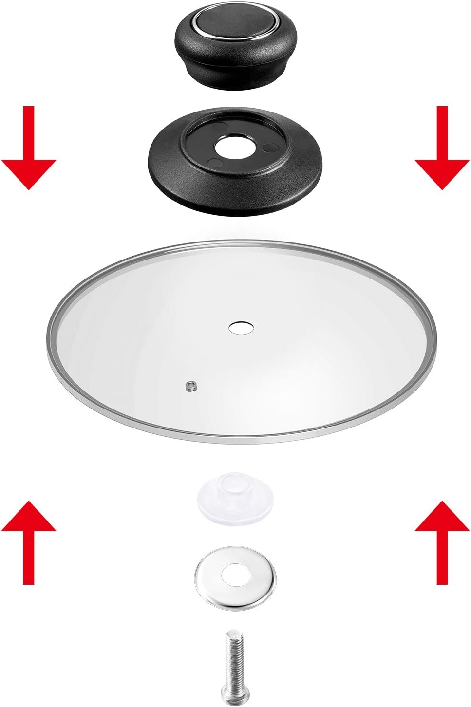 Just attach the knob and rubber gasket to the pot lid, then use screws (included) to fix them, finish the installation in minutes.