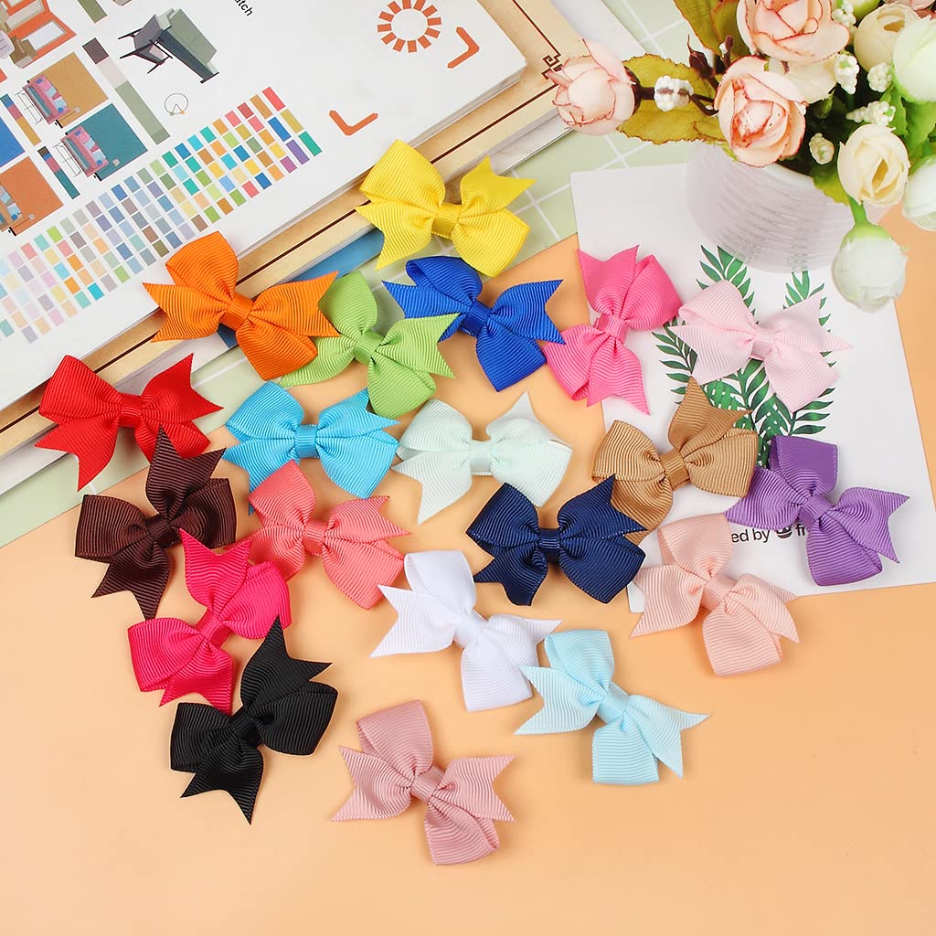 40 Pieces Baby Hair Clips Mini Hair Clips for Girls 2 Inch Grosgrain Ribbon Hair Bows Baby Girls Alligator Hair Barrettes Hair Accessories for Girls Kids Baby Toddlers (20 Colors)