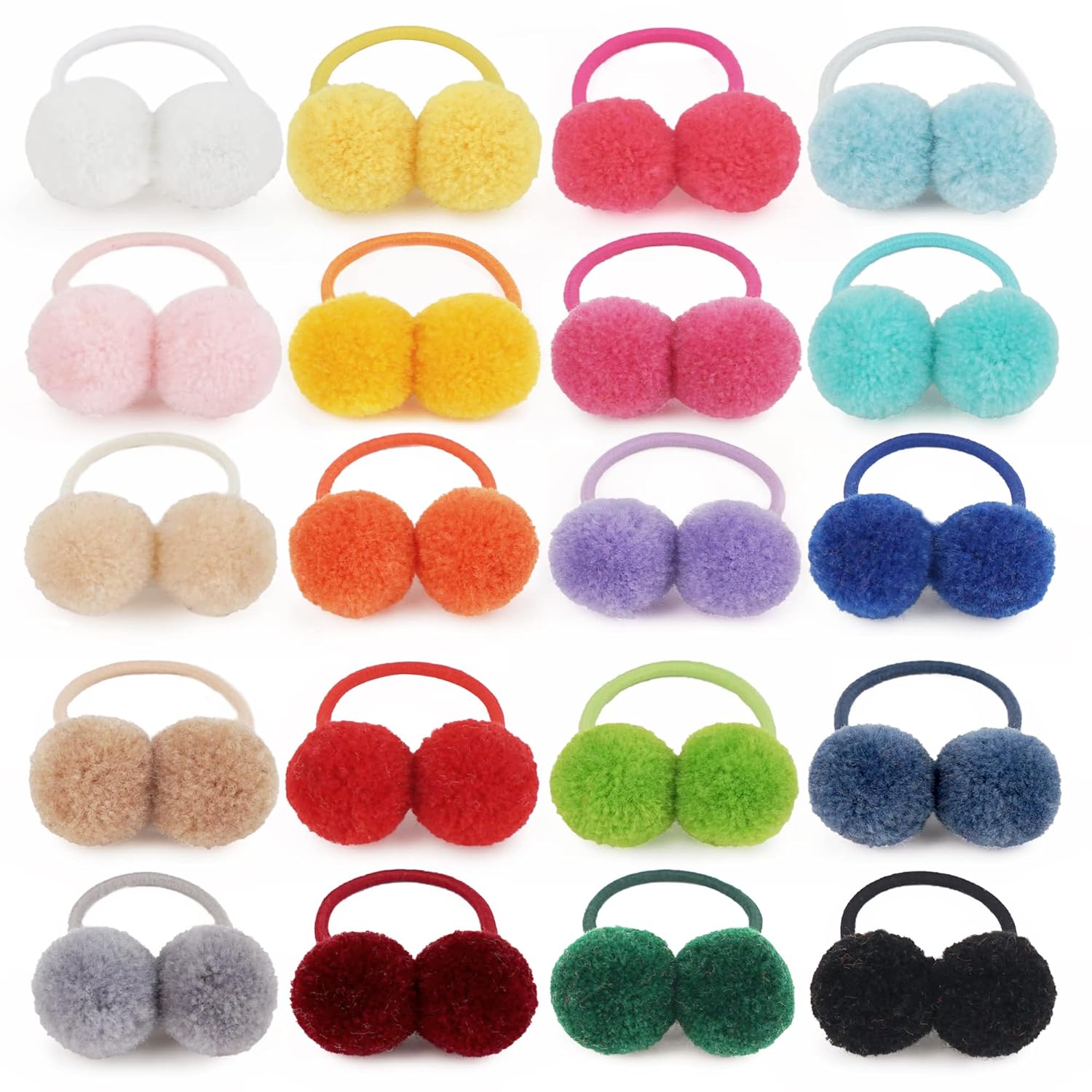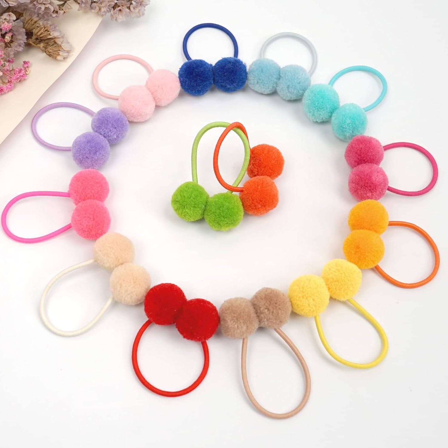 40 Pieces Pom Pom Hair Ties, 80Pcs Small Pom Ball Elastic Hair Fluffy Ponytail Holders Hair Rubber Band Hair Accessories for Baby Girls Toddlers Infants In Pairs