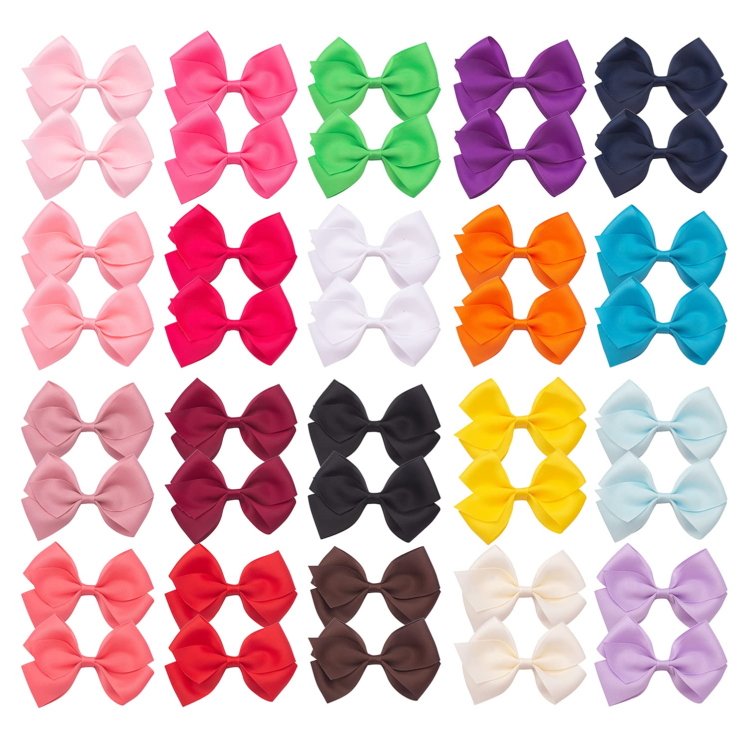 【BULK TO BUY】: VINOBOW assorted toddler bows include 40pieces per bag, providing 4inch hair bows for girls.