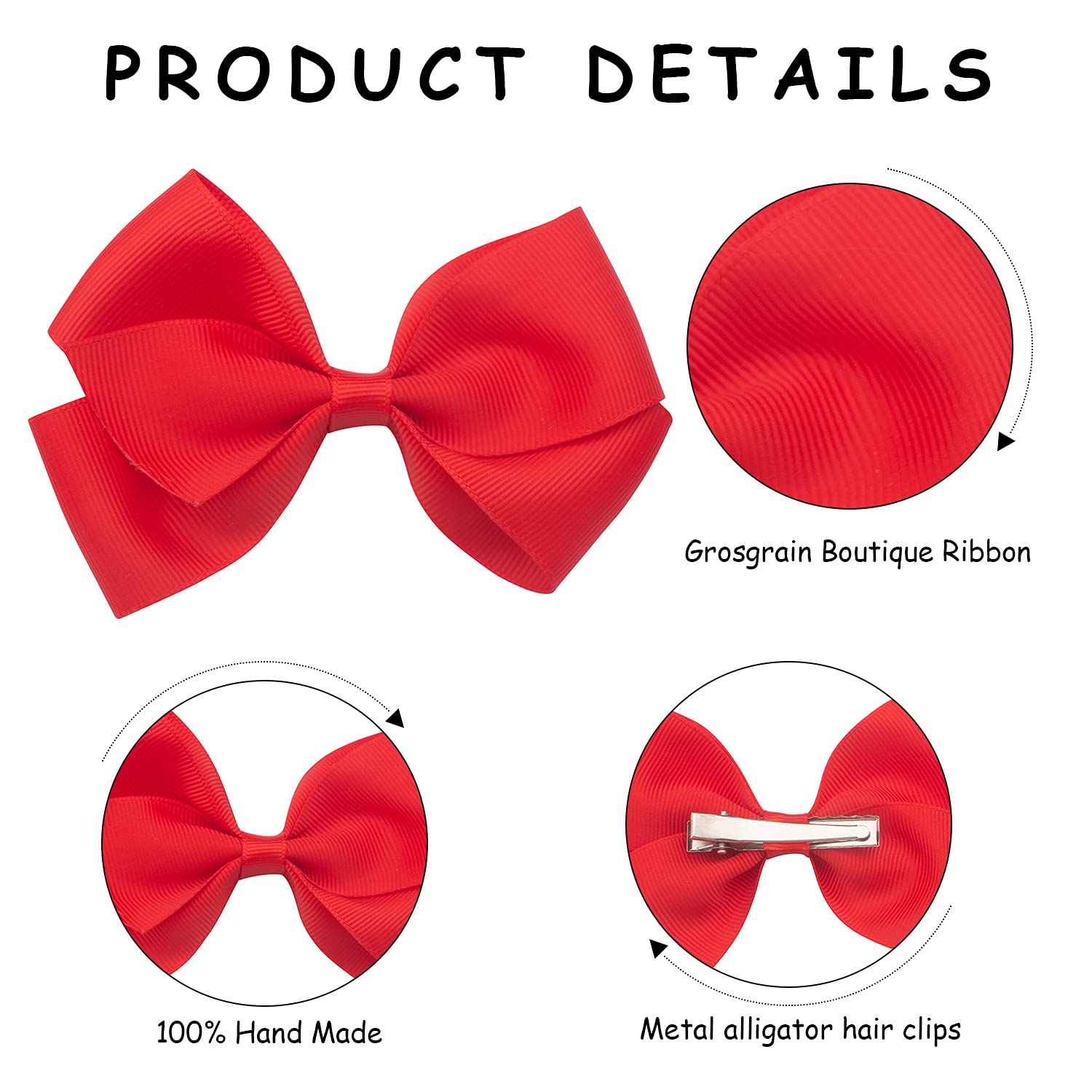 【SIMPLE DESIGN】: the bow clips are made from high quality grosgrain ribbon and metal alligator hair clips. They won’t easily break.