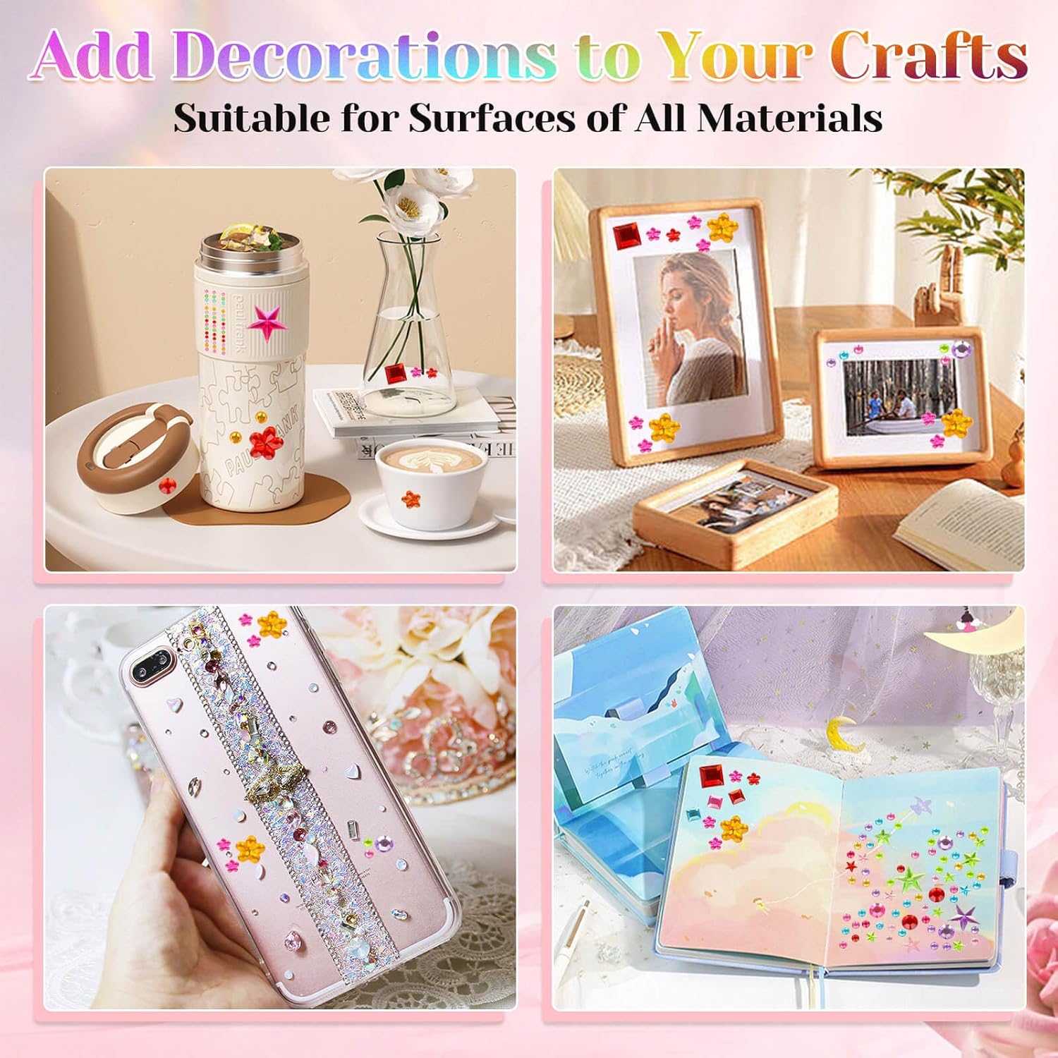 💎【Green Material】The sticky gemstones for crafts are made of premium acrylic, incredibly durable and hard, exhibiting a high gloss finish, appearing transparent and crystal clear. These diamond stickers for crafts will not turn yellow over time, they will retaining their vibrant colorful brilliance. Children can use these gem stickers for crafts to decorate diaries, letter cards, phone cases, mirrors, cups, vases, laptops, photo frames, gift wrapping, etc.