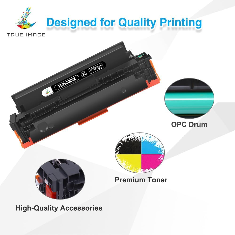 What’s in the box: TRUE IMAGE compatible 414X toner (with chip) replacement for HP 414X toner cartridges 4 packs high yield