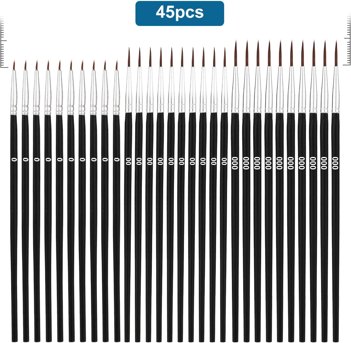 Packing List: You will receive 45 pieces of fine tip paint brushes in total. The models are 0/00/000, enough quantity to meet your various painting needs and replacements. It’s a perfect gift for professionals, kids, adults and artists.