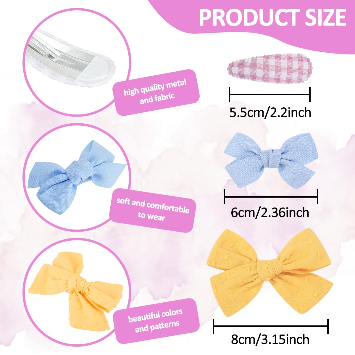 13 Pairs Flower Hair Clips (5.5cm/2.2inch)8 Pairs Mini Hair Bows Clips (6cm/2.36inch)5 PCS Hair Bows Clips (8cm/3.15inch)