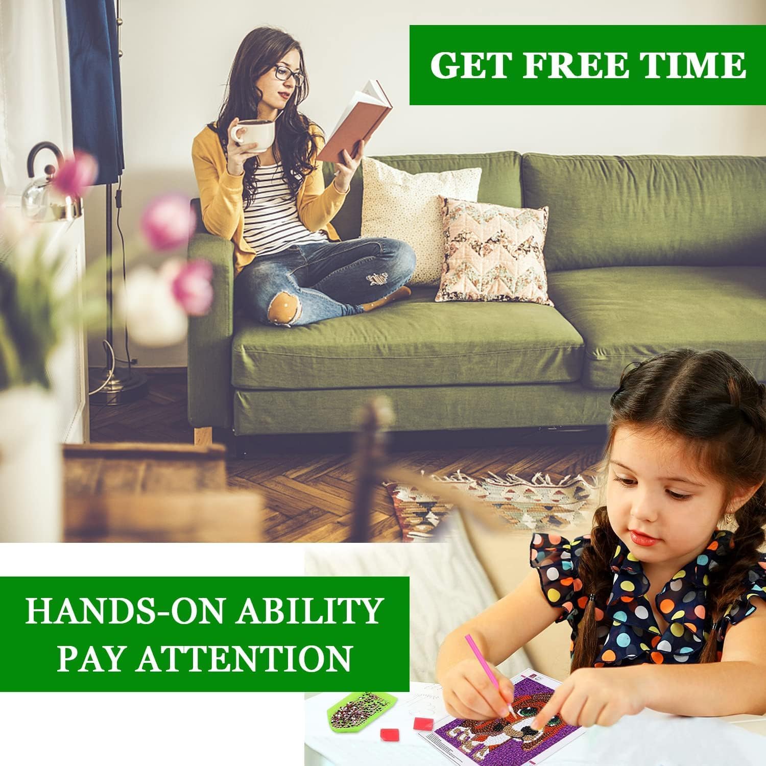 [ Independent or accompanied ] Children ages 6-12 can complete these diamond-shaped dots alone to keep the child busy and away from the phone. Parents can also accompany their children to complete it as an activity to strengthen the parent-child relationship. Children’s gem painting kit is also suitable for beginners
