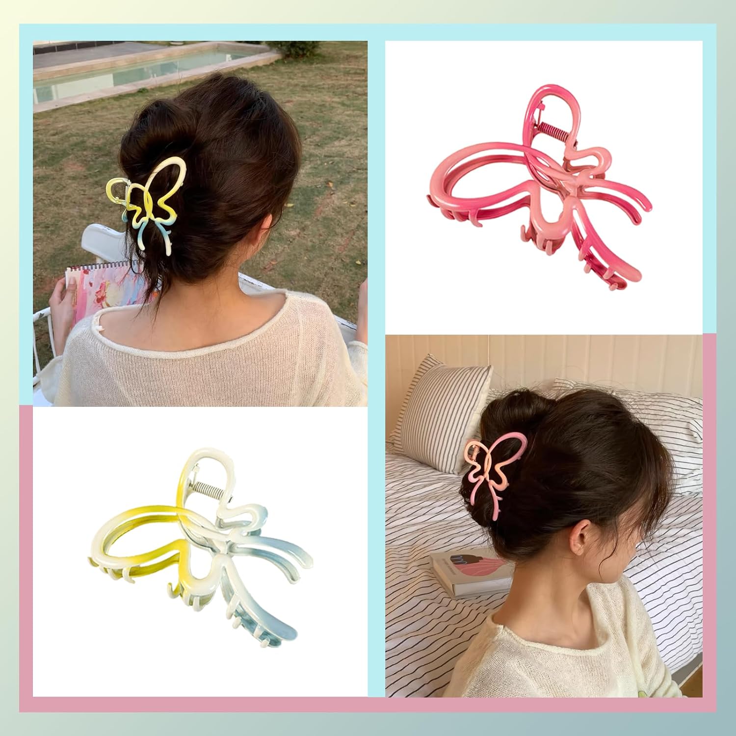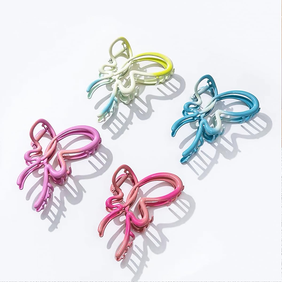 【Packing Description】- This bow hair clips comes in a pack of 4, available in pink, green, blue and pink-purple colors. In addition to daily wear, the fashionable and beautiful gradient hair claw clip can also be used as a gift for your friends or daughters and nieces.