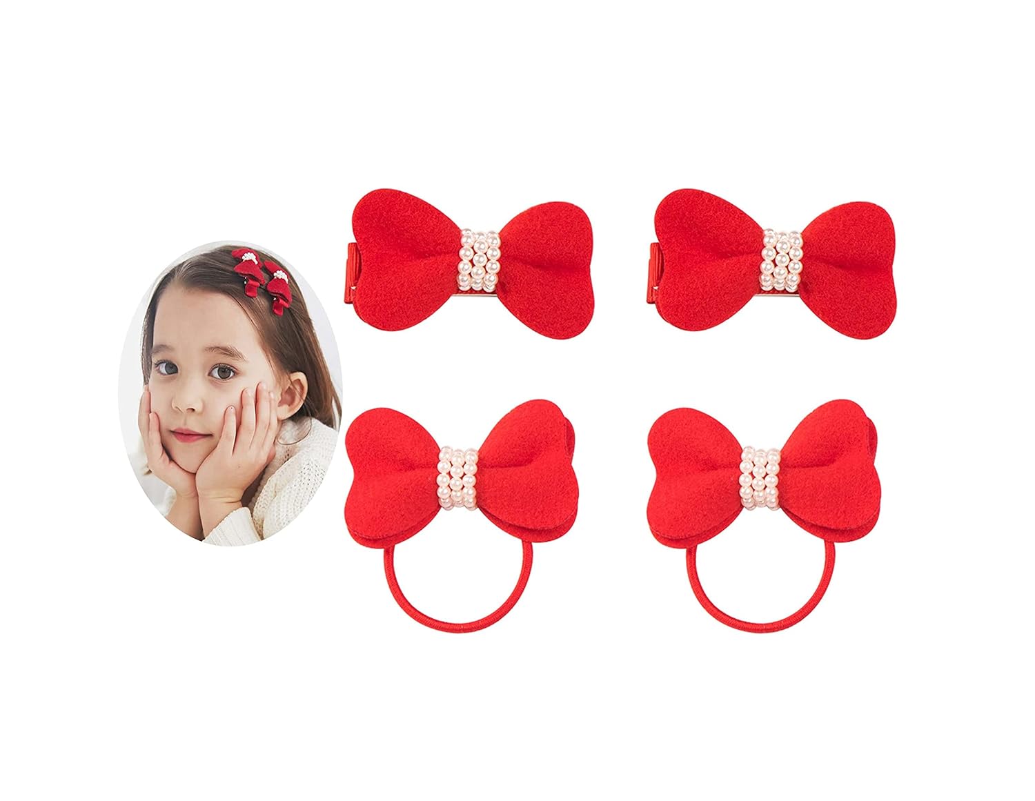 4PCS Red infant baby girls bow hair tie, Baby girls’ Bow Hair Clips hairpin, Christmas Red Bow Hair Barrettes hair accessories for baby girls.