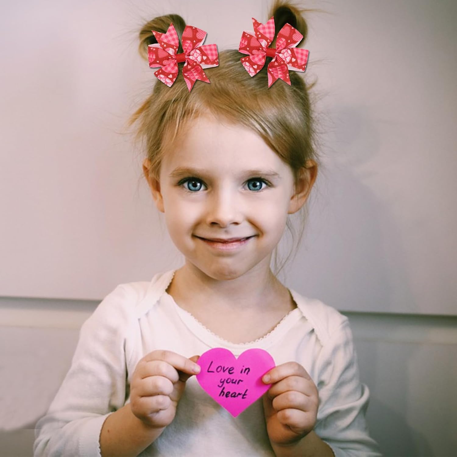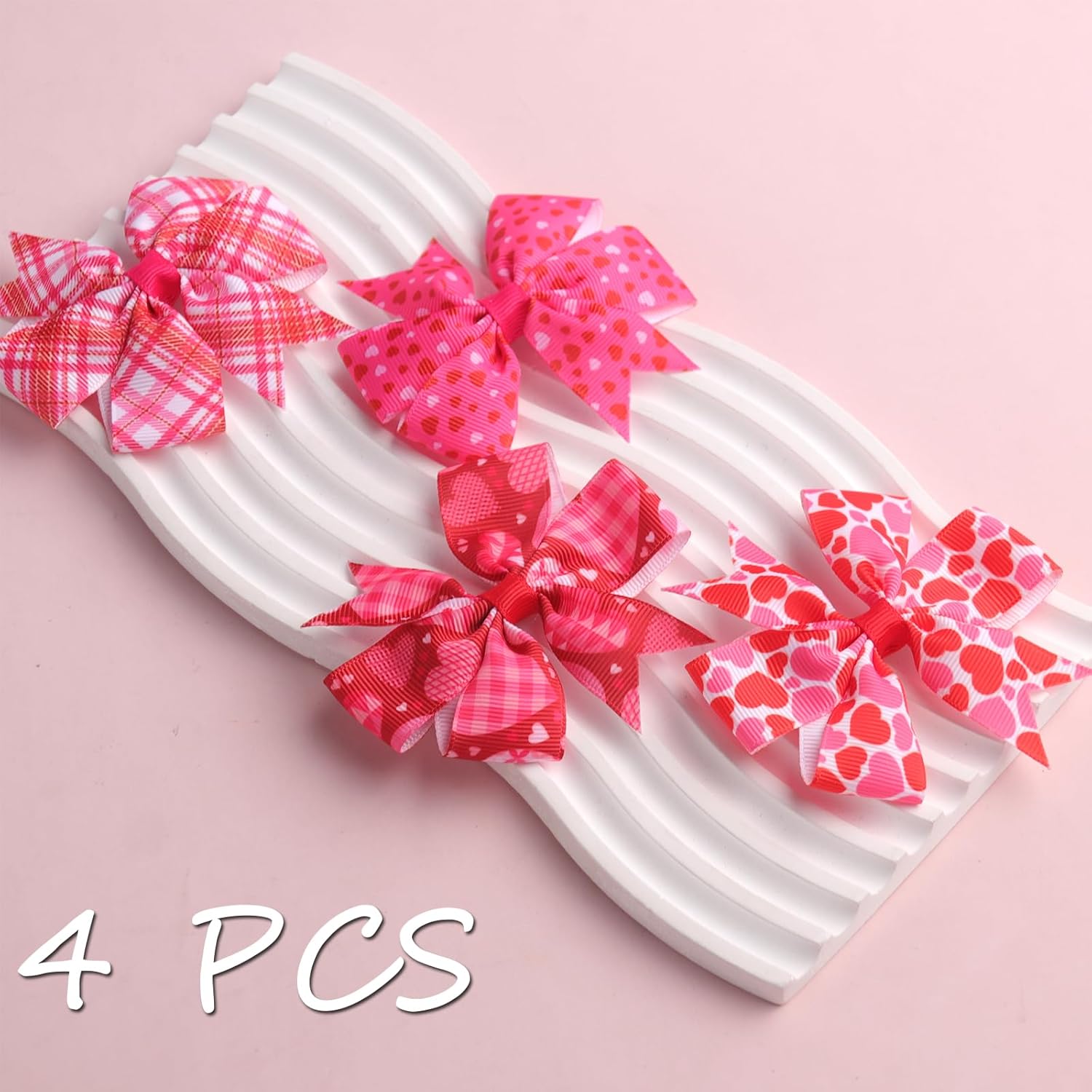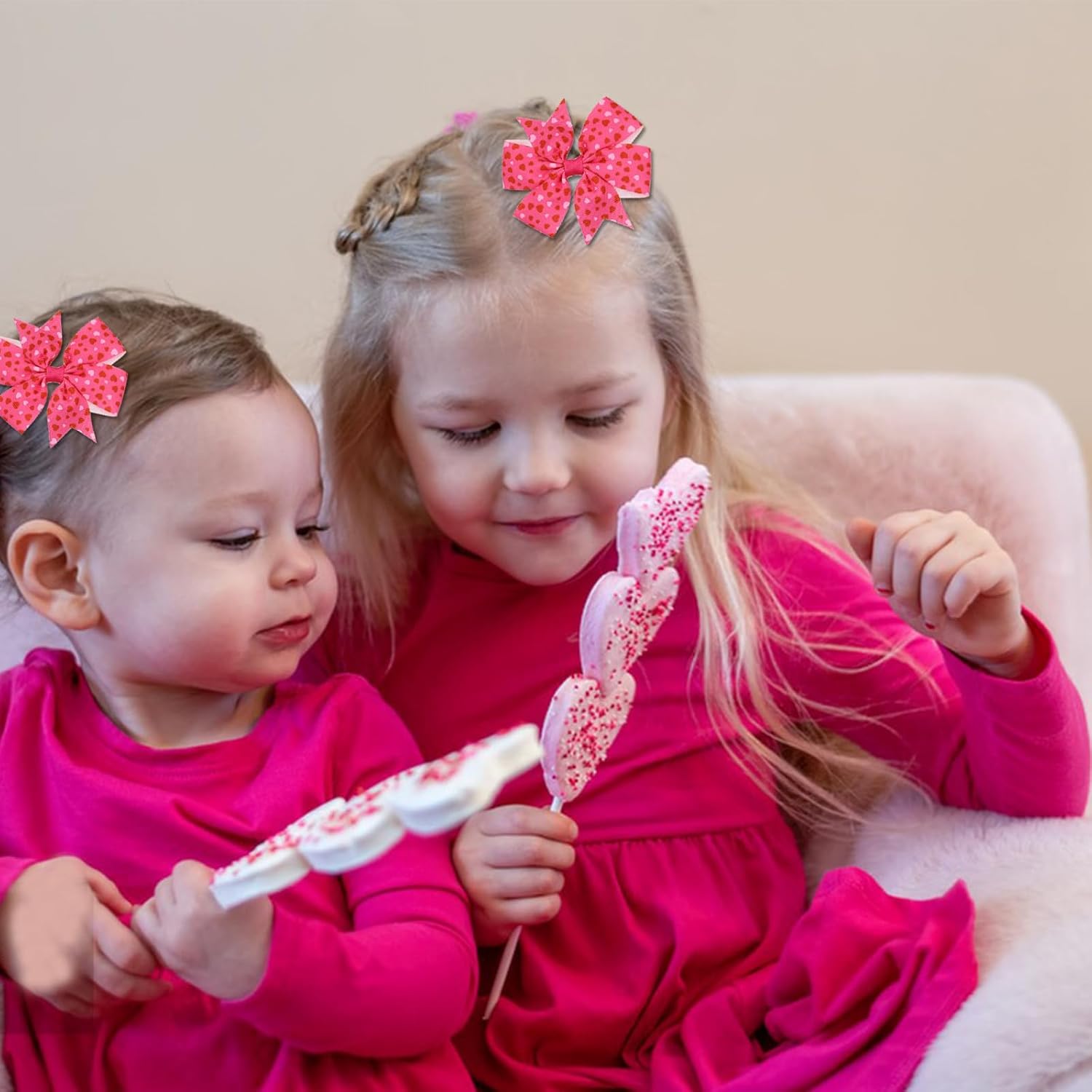 【Valentines Hair Bow Clips】You will receive 4 pcs super cute hair bow clips in rich colors and styles, perfect for your girls to wear and share with friends, adding an extra touch of sweetness to their looks.