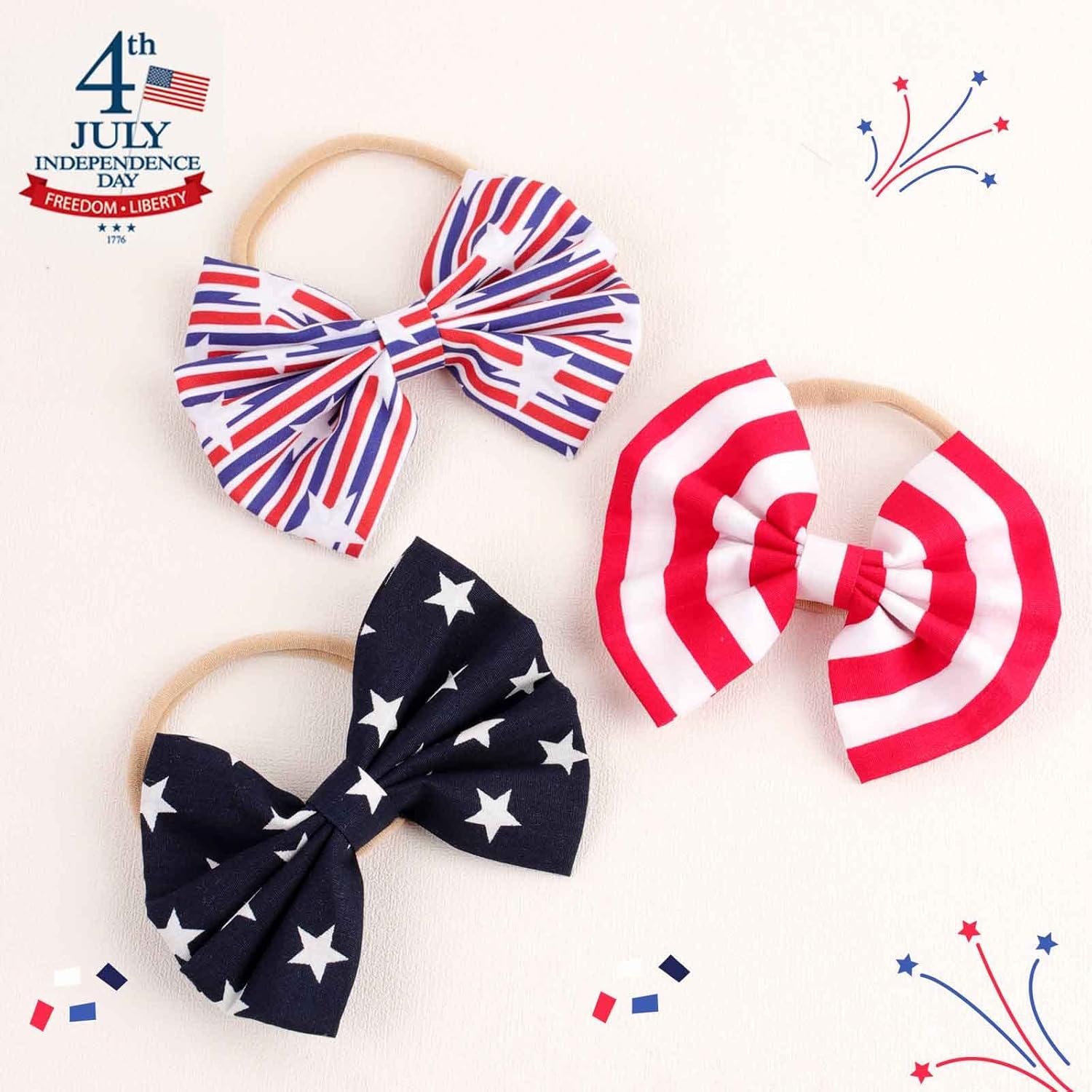 4th of July America Flag Baby Headbands Cheer Bow, Baby Girls Red White Blue Star Spangled Patriotic Hair Bow for Newborns Toddlers Small Children,3 Pcs (America Flag-B)