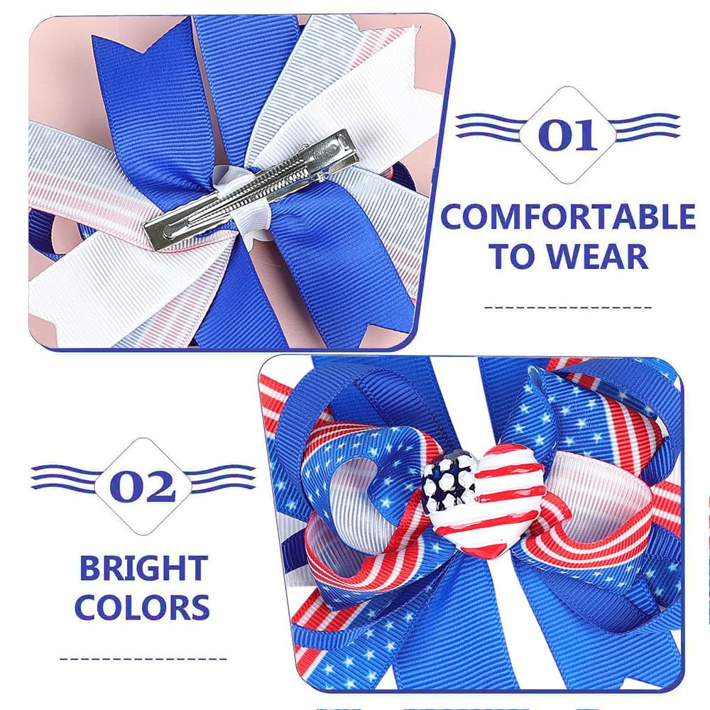 Package Includes: You will get 2 pieces of 4th of July bows clips for girls, which can match most hairstyles; The quantity is enough for you to use and replace, and they are suitable for baby girls or women.