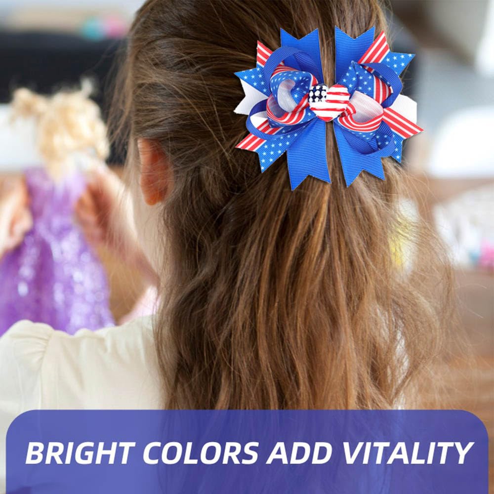 Package Includes: You will get 2 pieces of 4th of July bows clips for girls, which can match most hairstyles; The quantity is enough for you to use and replace, and they are suitable for baby girls or women.