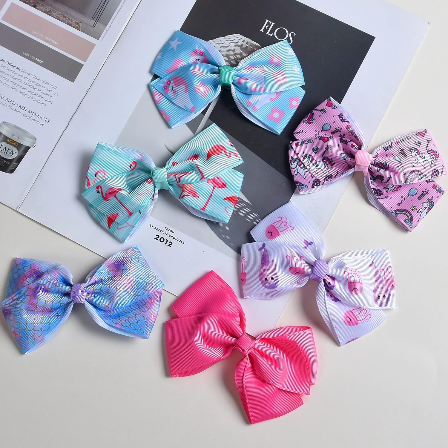 Multiple Color Options:Grosgrain ribbon bows and flower bows are a staple part of girls’s hair accessories storage box. We provide you with basic colors such as pink, white,yellow,navy blue,pink and purple, and there are also cute patterns colors such as unicorn,rainbow,mermaid and flamingo,which can match your little princess different hair styles.It’s not easy finding a kids hair bows that is both comfortable and can be used in many occasions.Our bulk hair bows are just what you princess need.