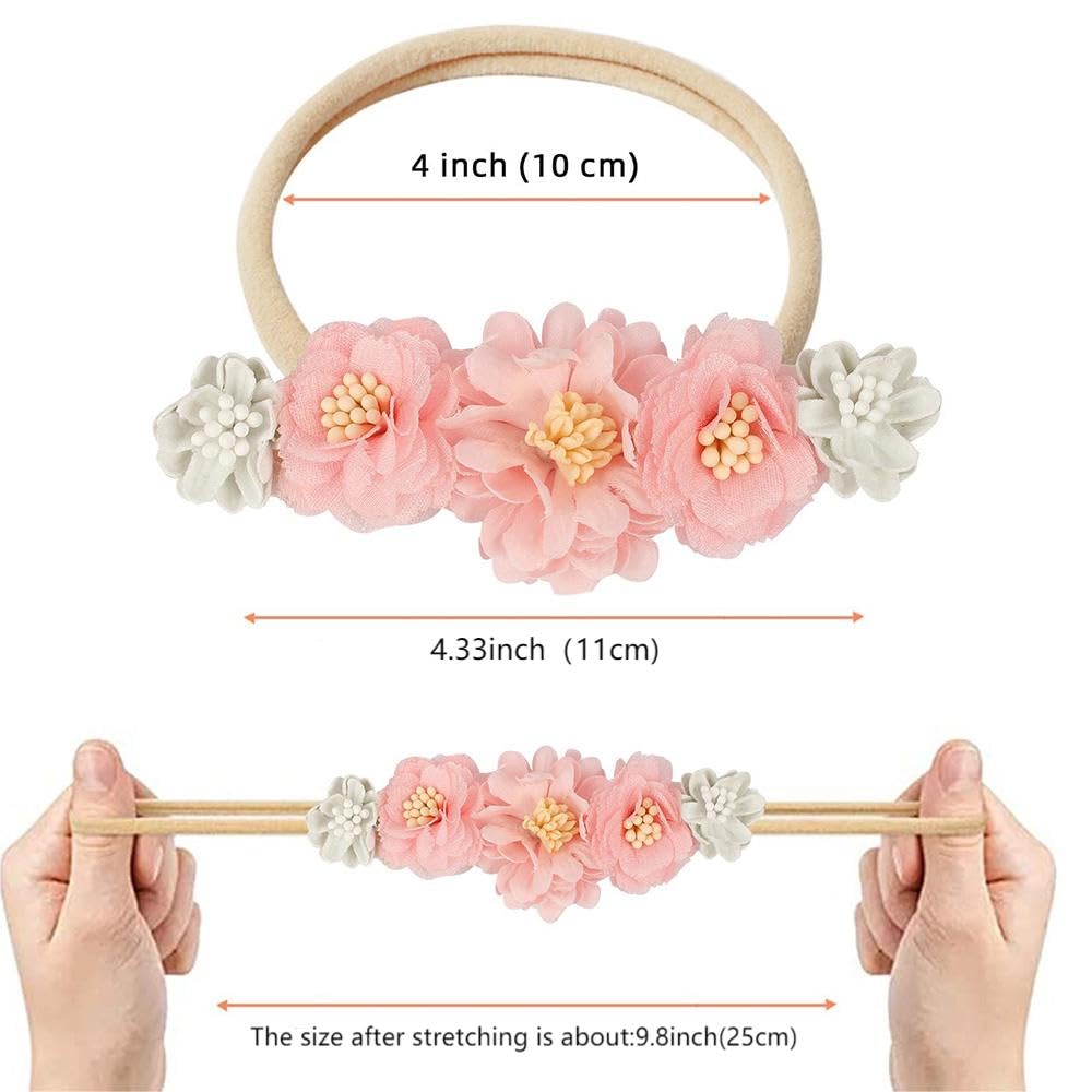 5 Pack Delicate Elastic Nylon Flower Head Band Super Soft Elastic Baby Girl Head Band Suitable for Baby Girls New Borns Infants and Children