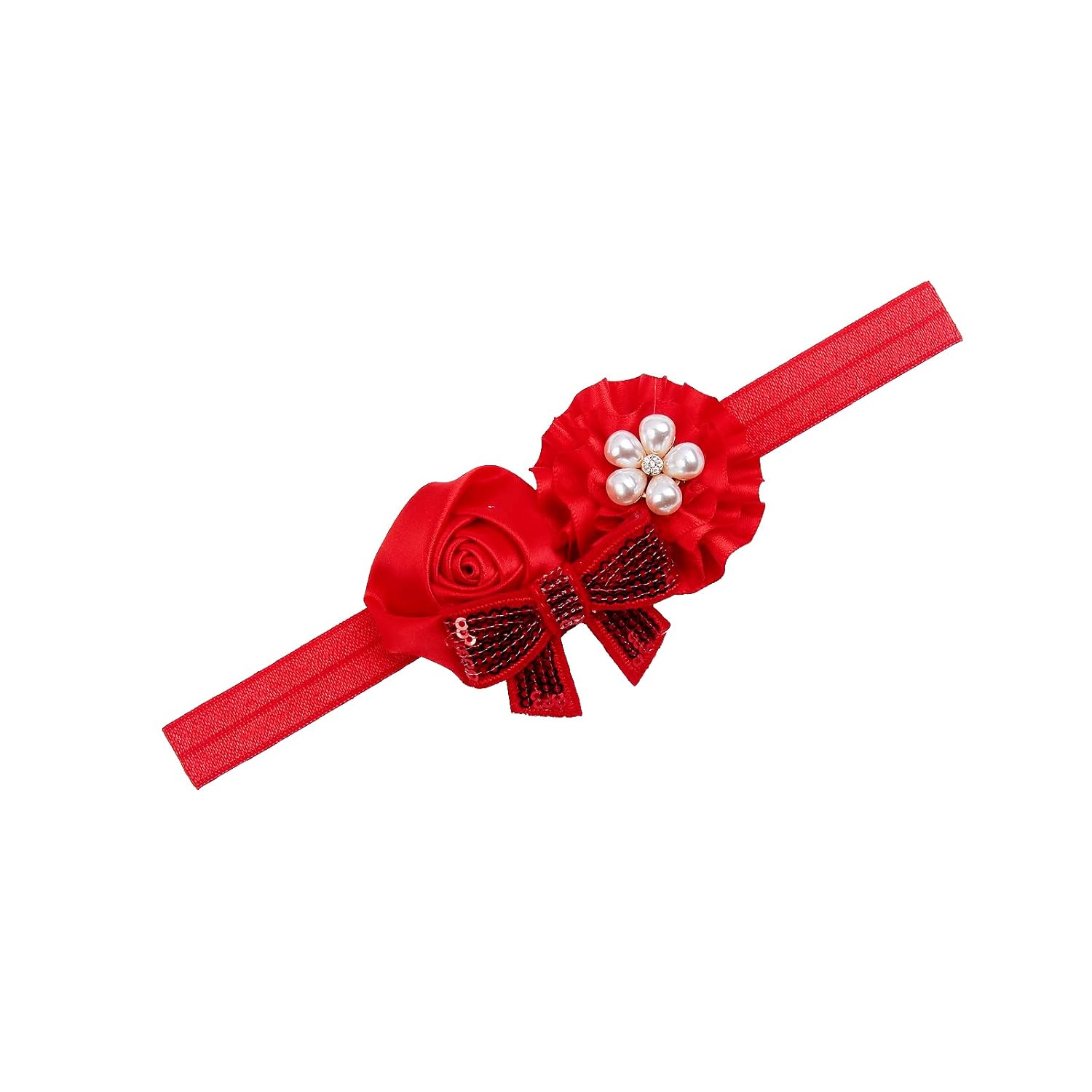 5 PCS Boutique Baby Sequin Bows Headband Toddler Girls Grosgain Ribbon Flower Hairband Headdress Gift (Pink Set)