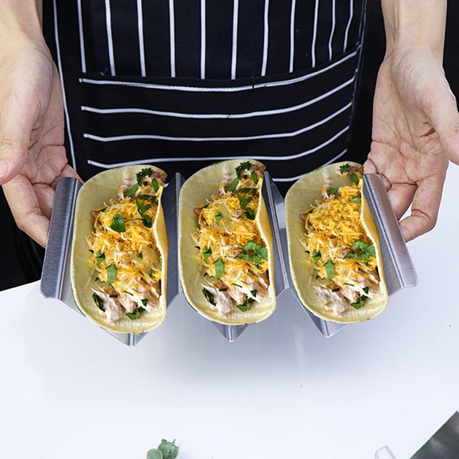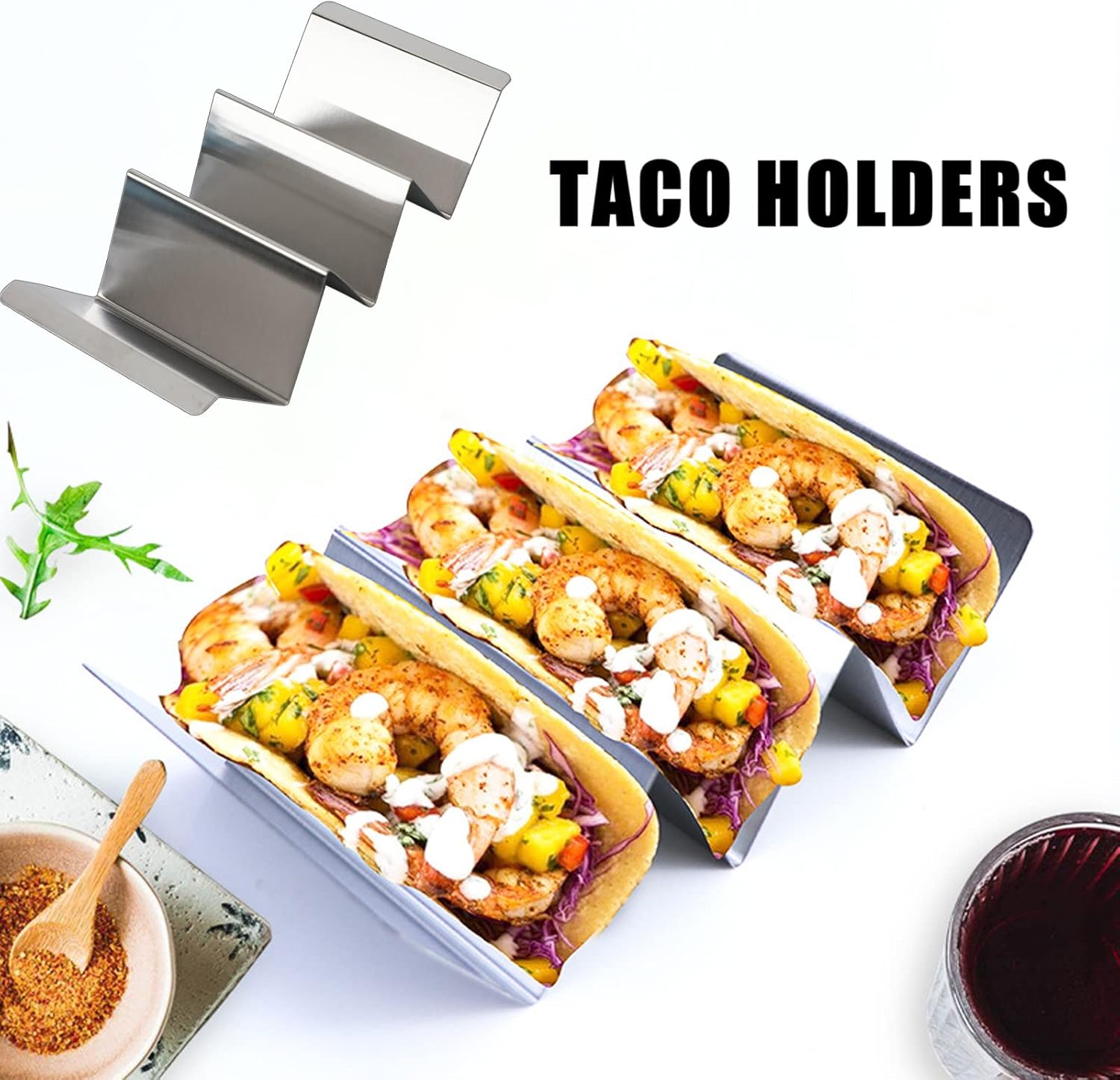 【Metal Taco holders Set】- Package includes 2 pack metal taco holders,which can hold up to 3 tacos each, can have a better cooking life