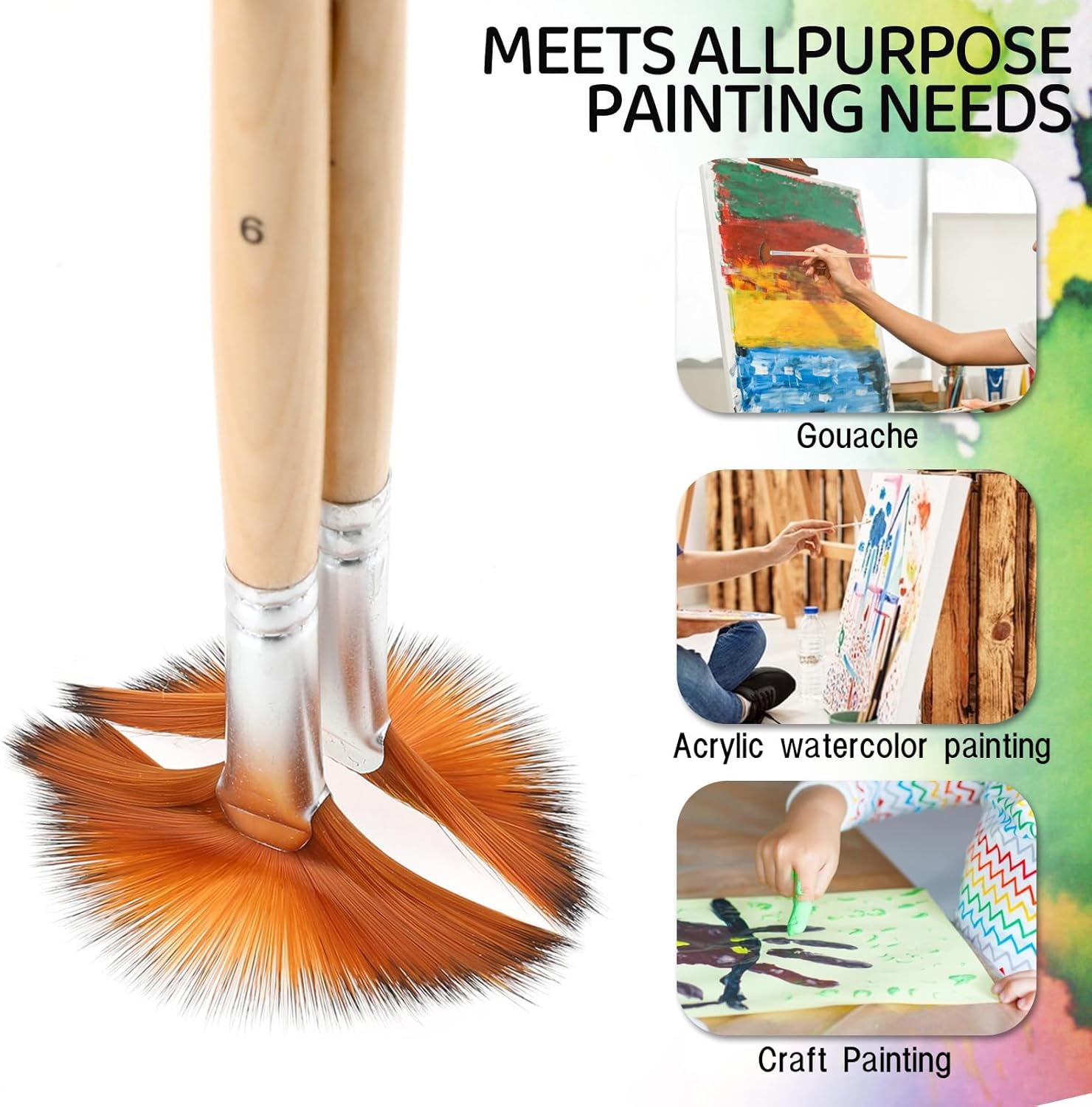 Ergonomic Wooden Handles: Experience control and comfort with the ergonomic design of these fan brush for acrylic painting, boasting long solid wooden handles that are straight, smooth, offering a good blend of balance and ease of use.