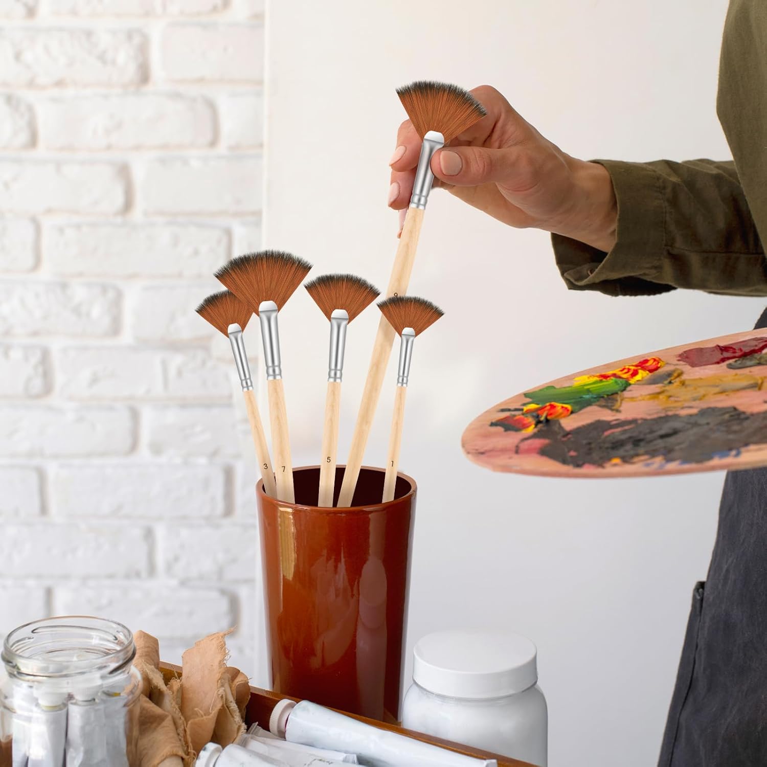Easy Maintenance and Reshaping: Enjoy effortless cleaning by simply washing the fan brush for painting with water and allowing them to air dry in a cool, dry place for your next painting project. If the bristles lose their shape, a quick soak in warm water followed by reshaping will restore the fan paint brush tips to their original form.