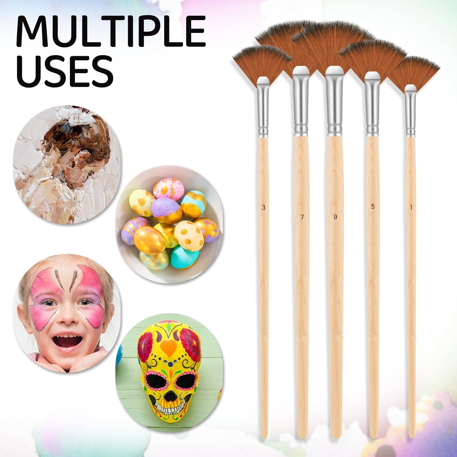 5 Pieces Fan Brush for Painting Artist Brushes Nylon Hair Watercolor Brushes Sets with Long Handle Acrylic Paint Brushes Professional Soft Anti-Shedding Brush for Oil Gouache Painting DIY Art Craft