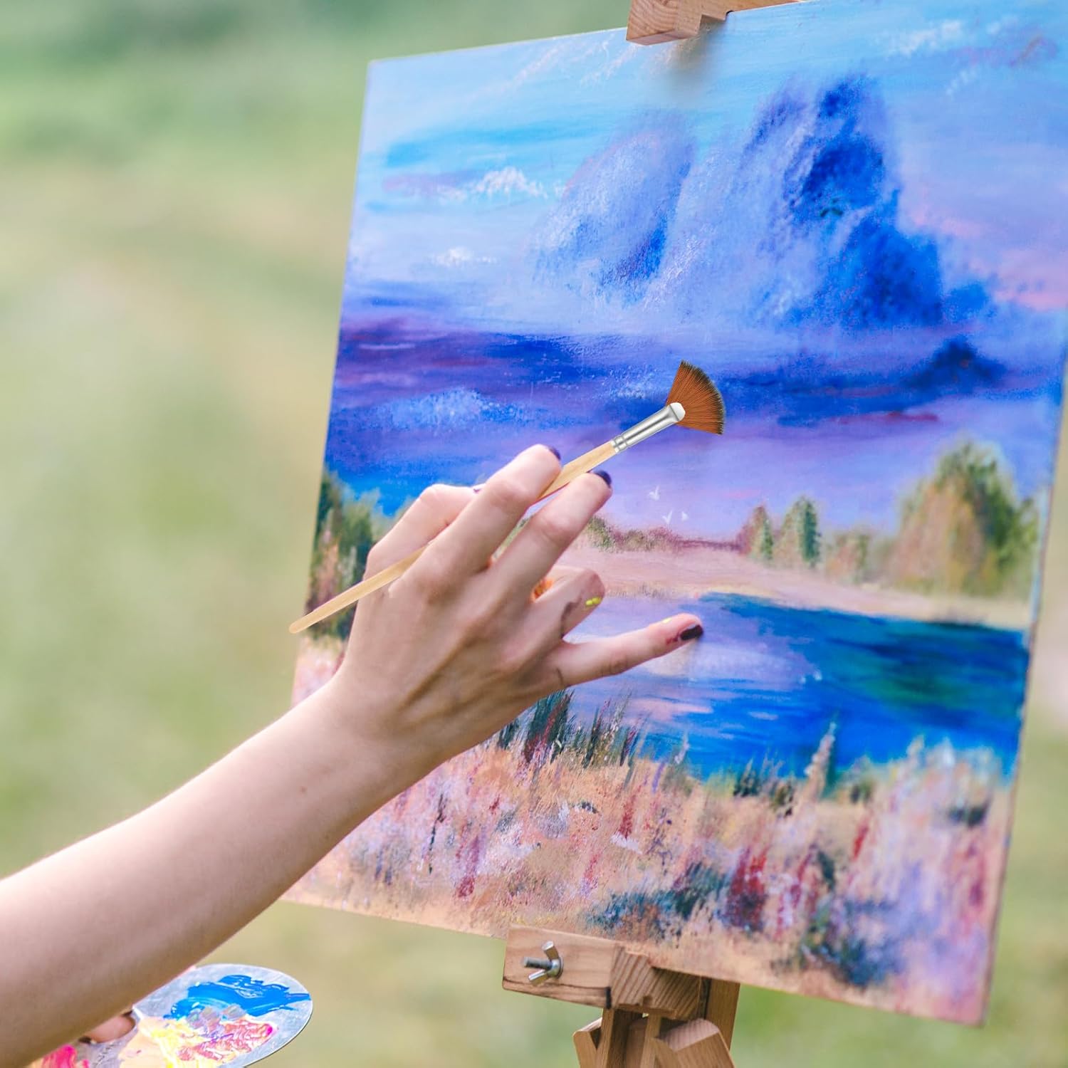 Ergonomic Wooden Handles: Experience control and comfort with the ergonomic design of these fan brush for acrylic painting, boasting long solid wooden handles that are straight, smooth, offering a good blend of balance and ease of use.