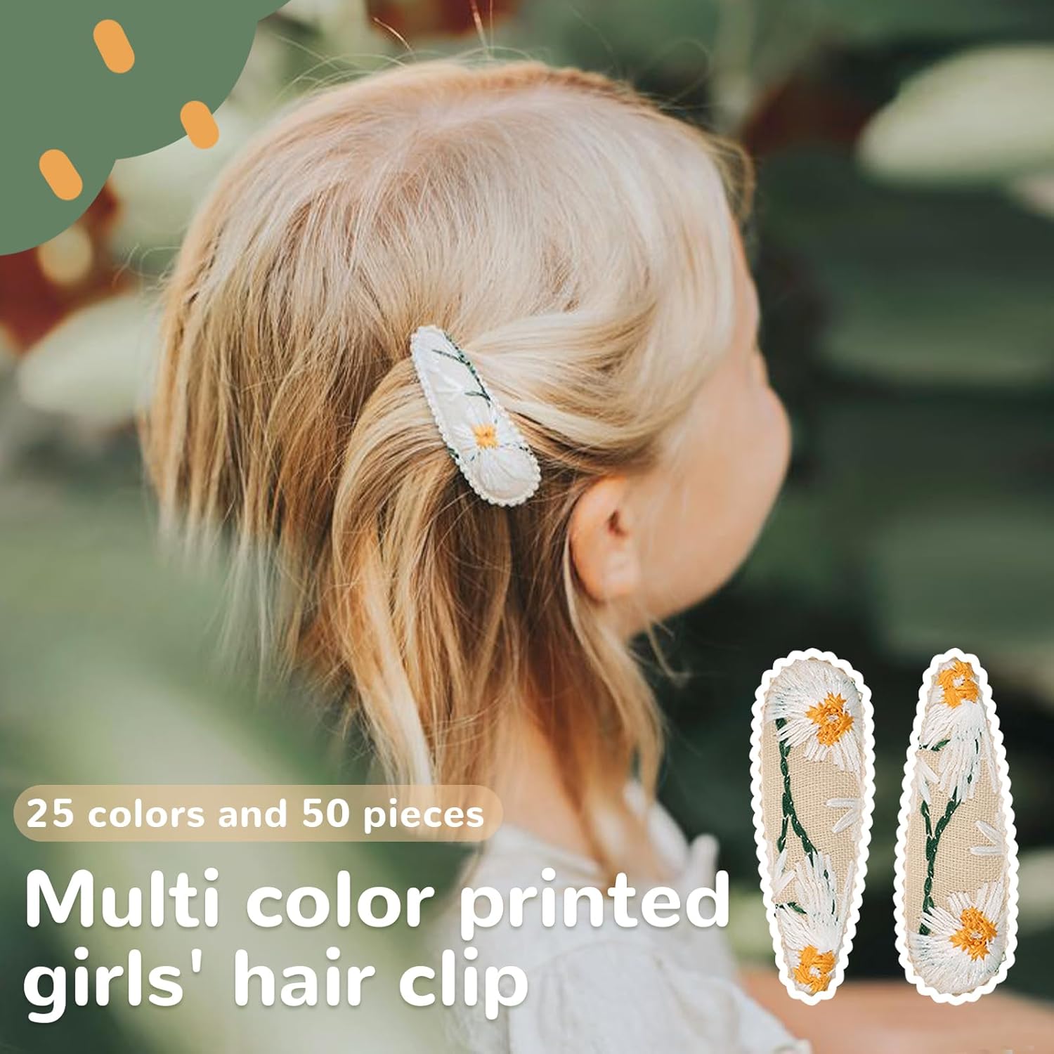 50 PCS Girl Hair Clips Floral Print Toddler Hair Clips Non Slip Wrapped Snap Hairpins for Kids Barrettes Hair Accessories for Baby Toddler Girls