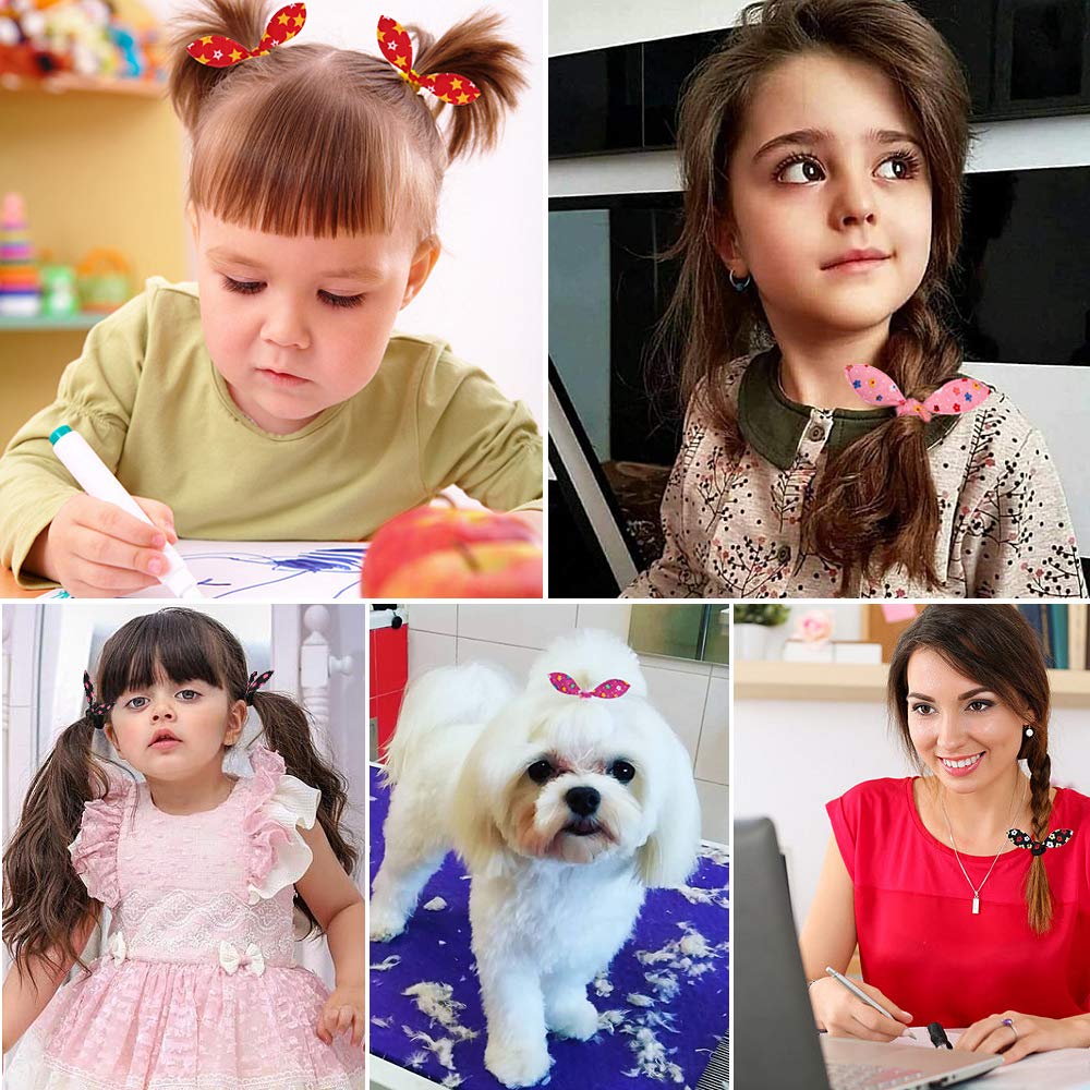 Our hair accessories for girls and women, 50Pcs (25 Pairs) elastic hair ties are designed with rabbit ear bowknot shape, bright, cute and eye-catching, suitable for various hairstyles, small and lightweight, beautiful and cute. 200 pcs of mini high-quality elastic rubber band, strong and durable enough to let you create different hair styles. Make you or your child look more cute and charming.