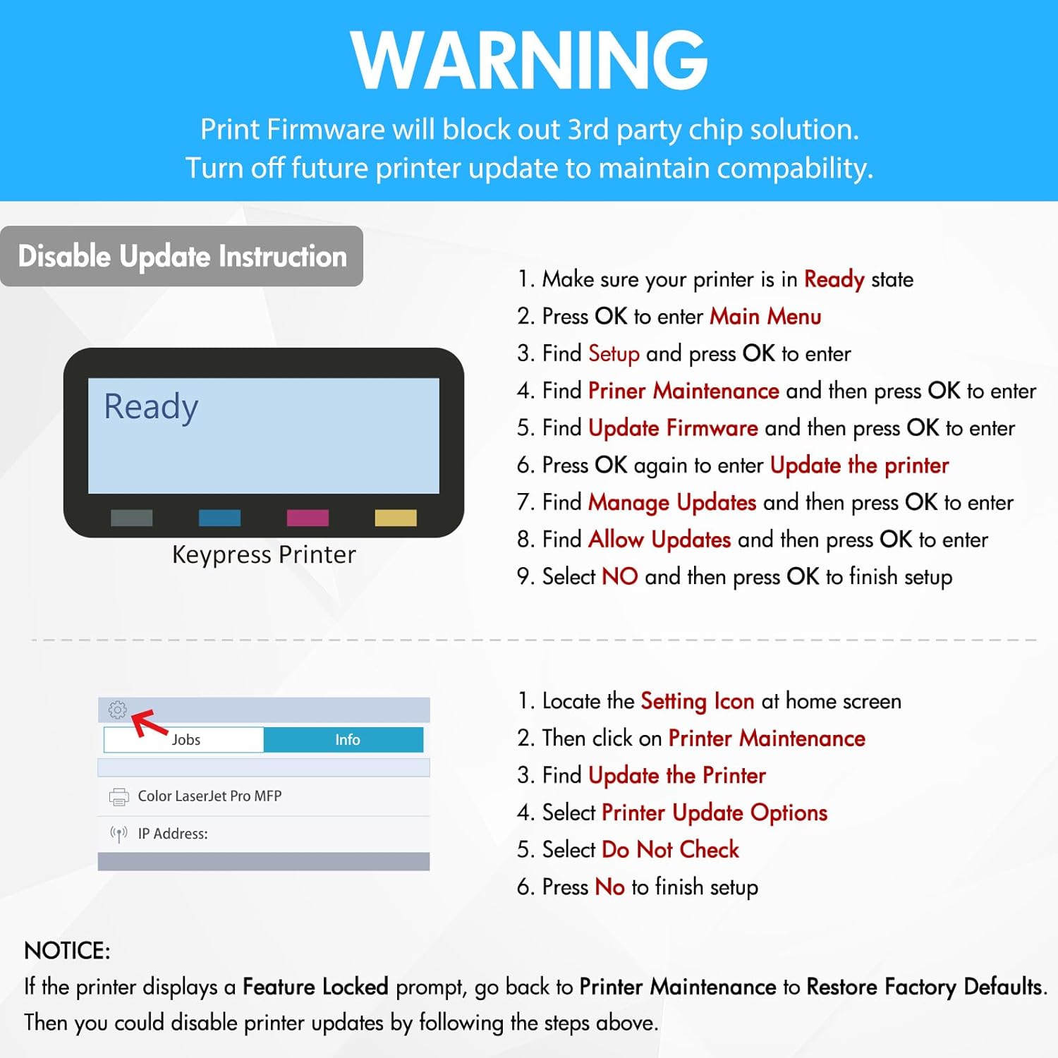 Superior quality: High-efficiency 58A with chips toner to get the clear text and vivid color printing. These 58A toner cartridges are alread installed with orginal chips, No need to transfer orginal 58A or 58X toner chip to them
