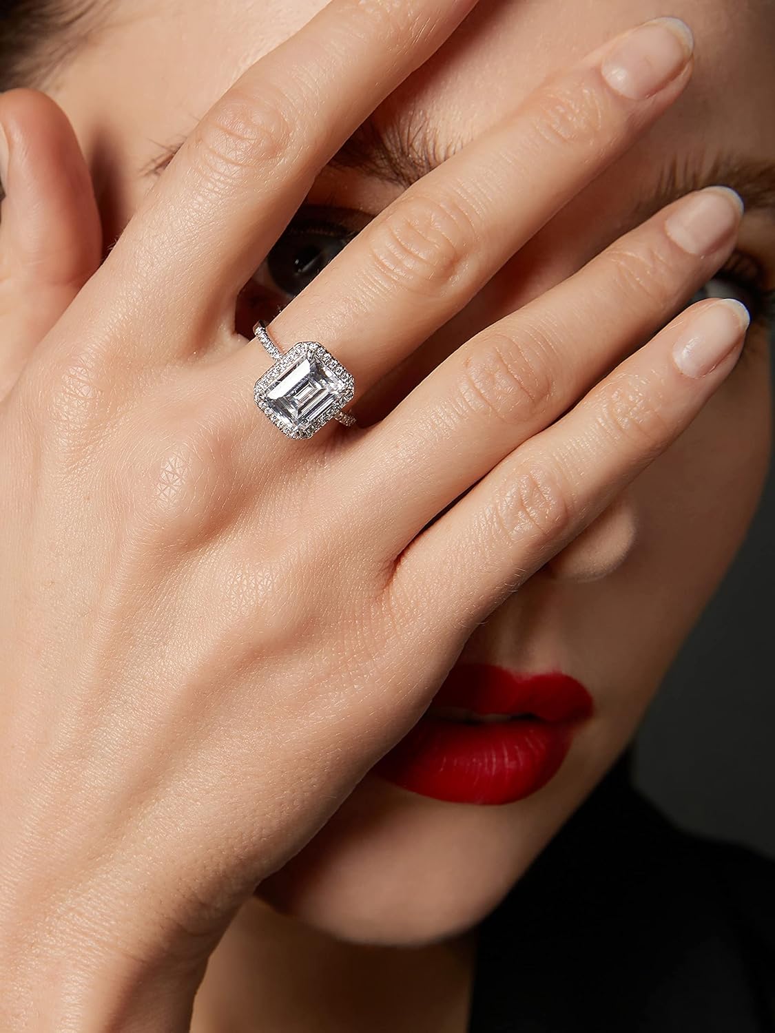 6 Carat High Carbon Diamond Sparkle 10 Ring Lab Simulated Diamond Sterling Silver White Gold Plated Wedding Engagement Ring