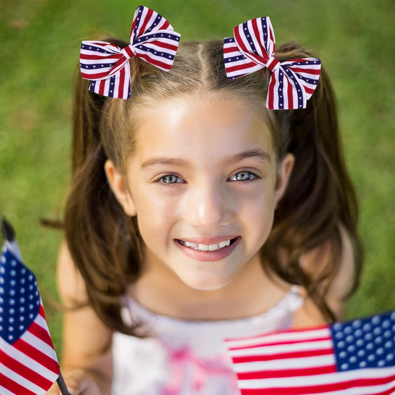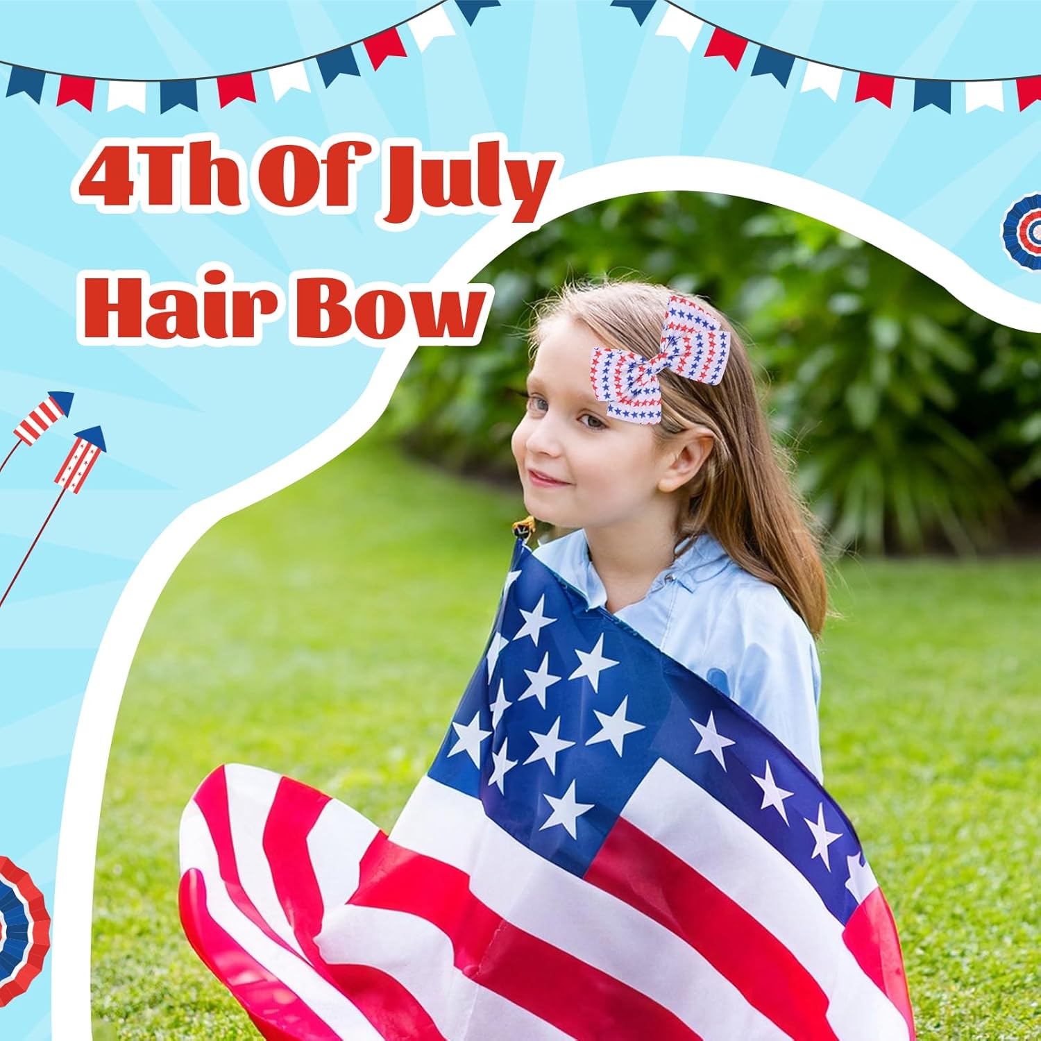 6 Pcs 4th of July American Flag Hair Bows for Girls,Fourth of July Independence Day Hair Accessories Patriotic Hair Bows Clips for Girls Toddler Children (Flag a)
