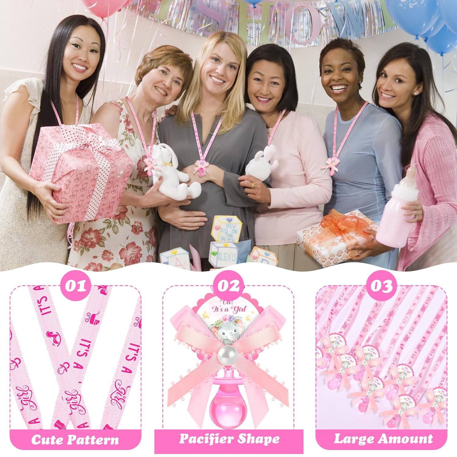 60 Pcs Baby Shower Pacifiers Necklace Cute Elephant Acrylic Baby Pacifier Party Favor Pacifiers Charm Pacifiers Necklace for Girls Boys Baby Shower Party Decoration Table Scatter (Pink,Girl)