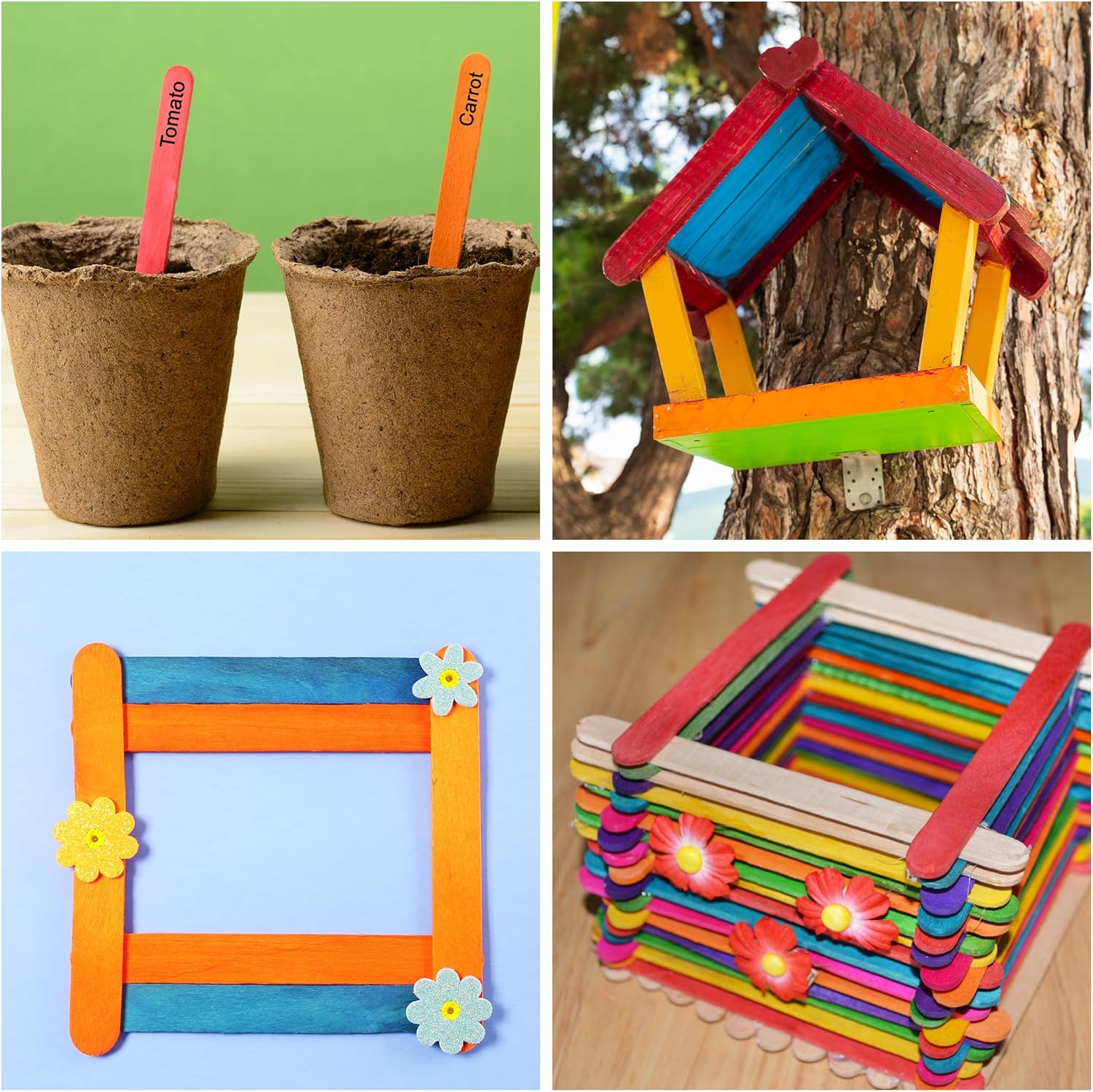 【High Quality Material】The colored popsicle sticks for crafts are made of high-quality natural wood, with smooth circular edges and flat surfaces that are not only easy to decorate and make handicrafts, but also do not harm children’s skin, ensuring their safety when making craft projects.