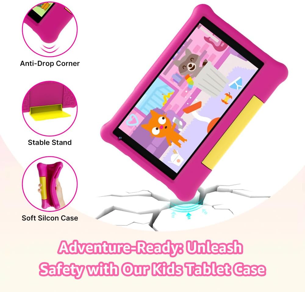 7″ Android 13 Kids Tablet, Ages 3-7 Tablet for Kids, Quad-Core, Shockproof Case & Stand, 32GB Storage, HD Display with 2MP Camera, Extended Battery, Parental Controls, Learning & Play