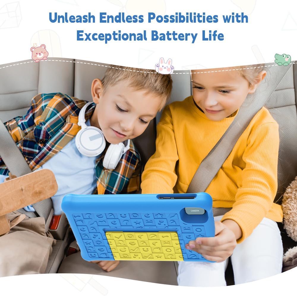 【Large Battery And Fast WI-FI】Kids tablet stream over wifi or view downloaded content on the go and up to 5 hours of 3000mAh battery for reading, browsing the web, watching videos, and listening to music.