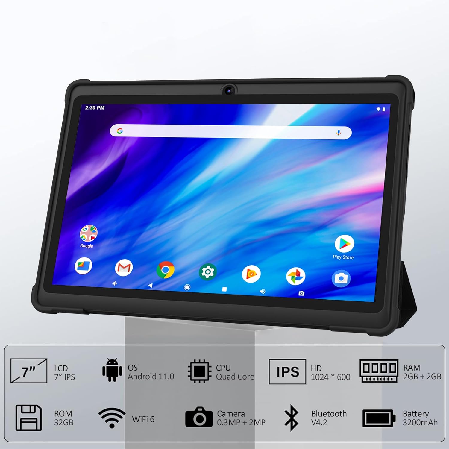 [Specially Designed Case] This 7” tablet is very light, weighing only 290g, and can be held in one hand.Tablet PC comes with an extra case that protects it well. Protect the tablet from scratches, drops, shocks, etc. It is a good choice as a gift for children.